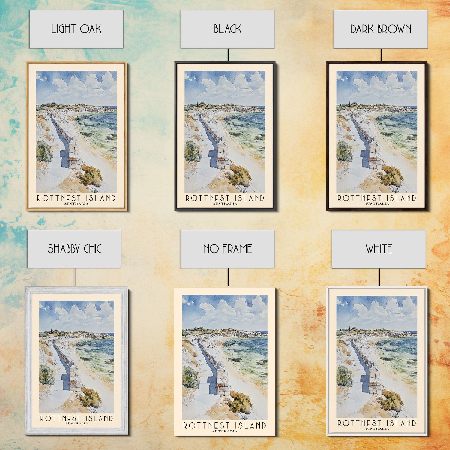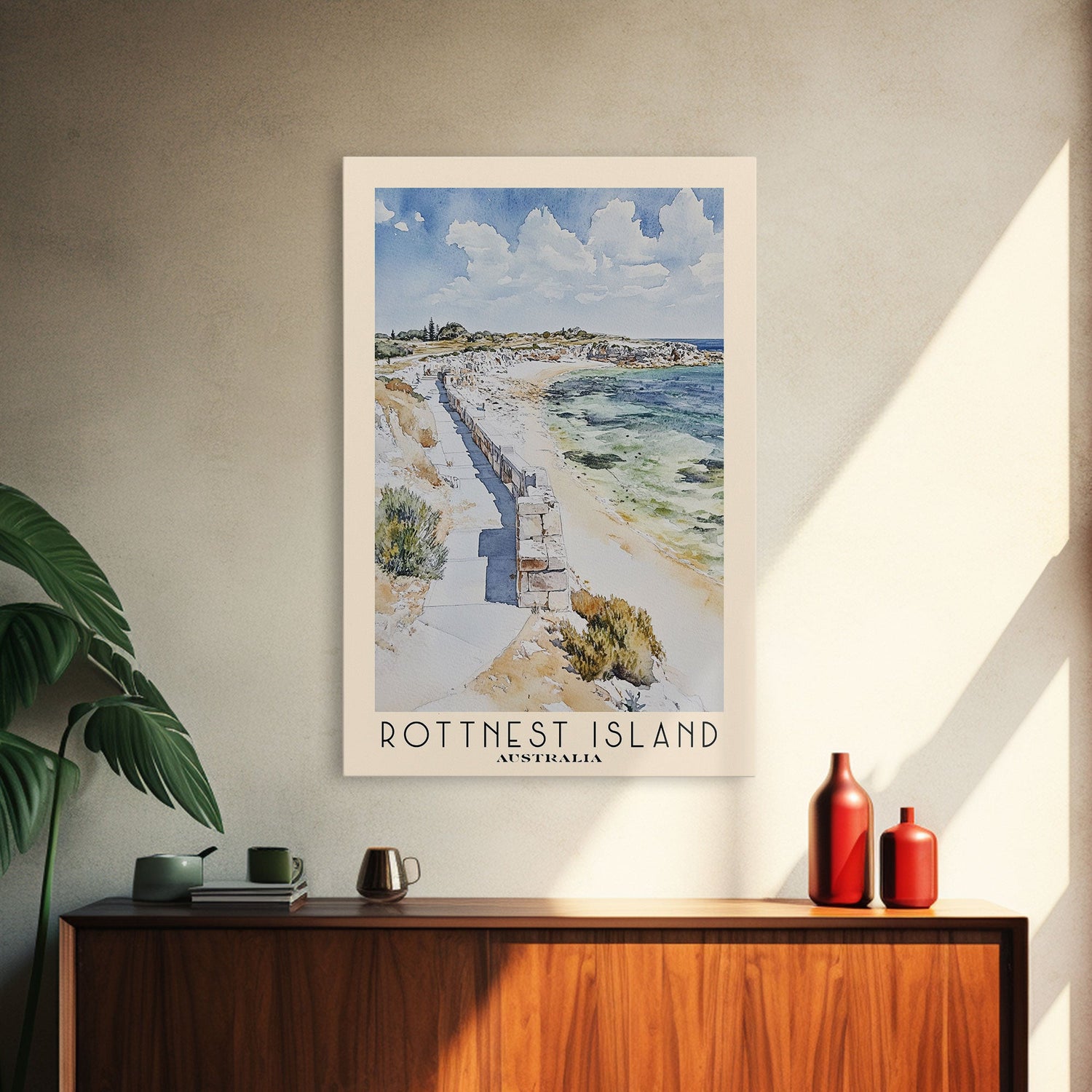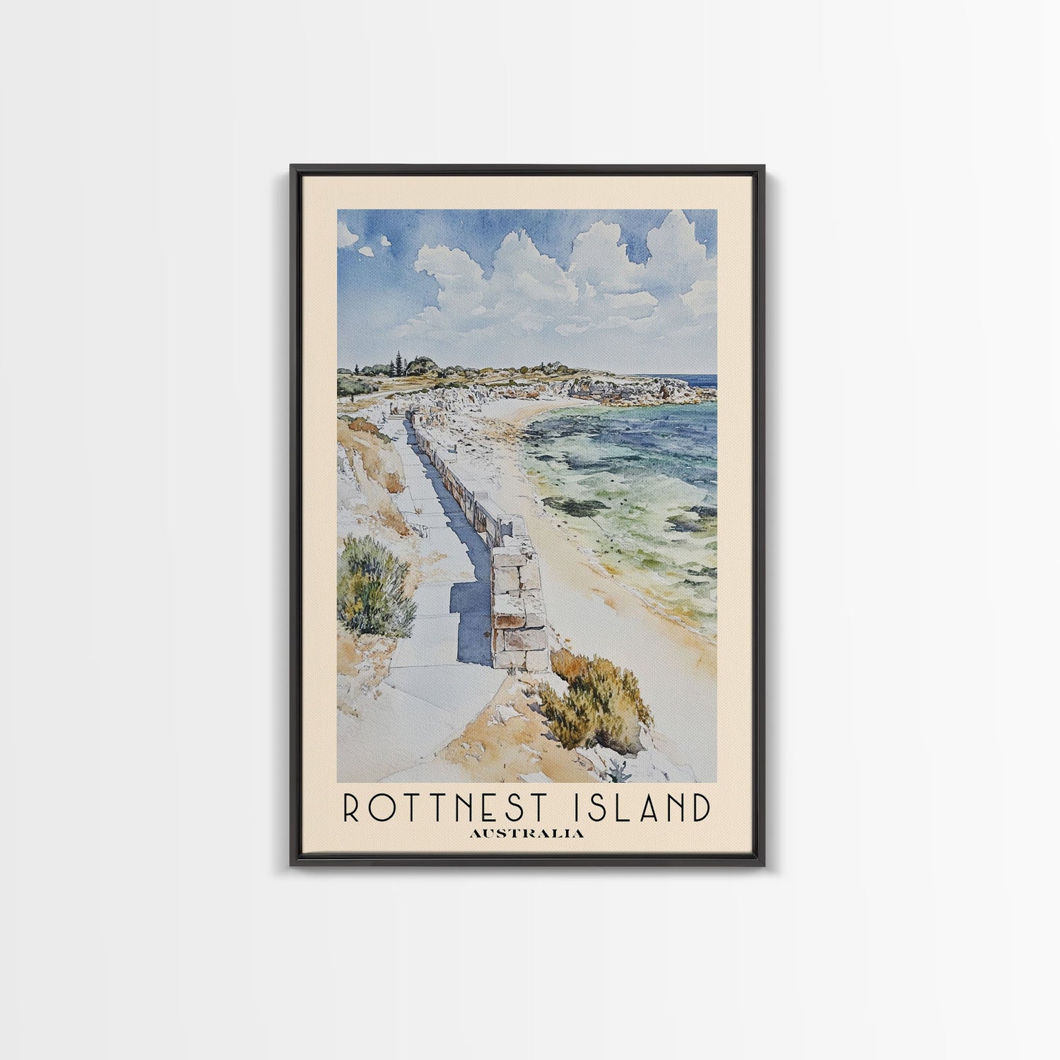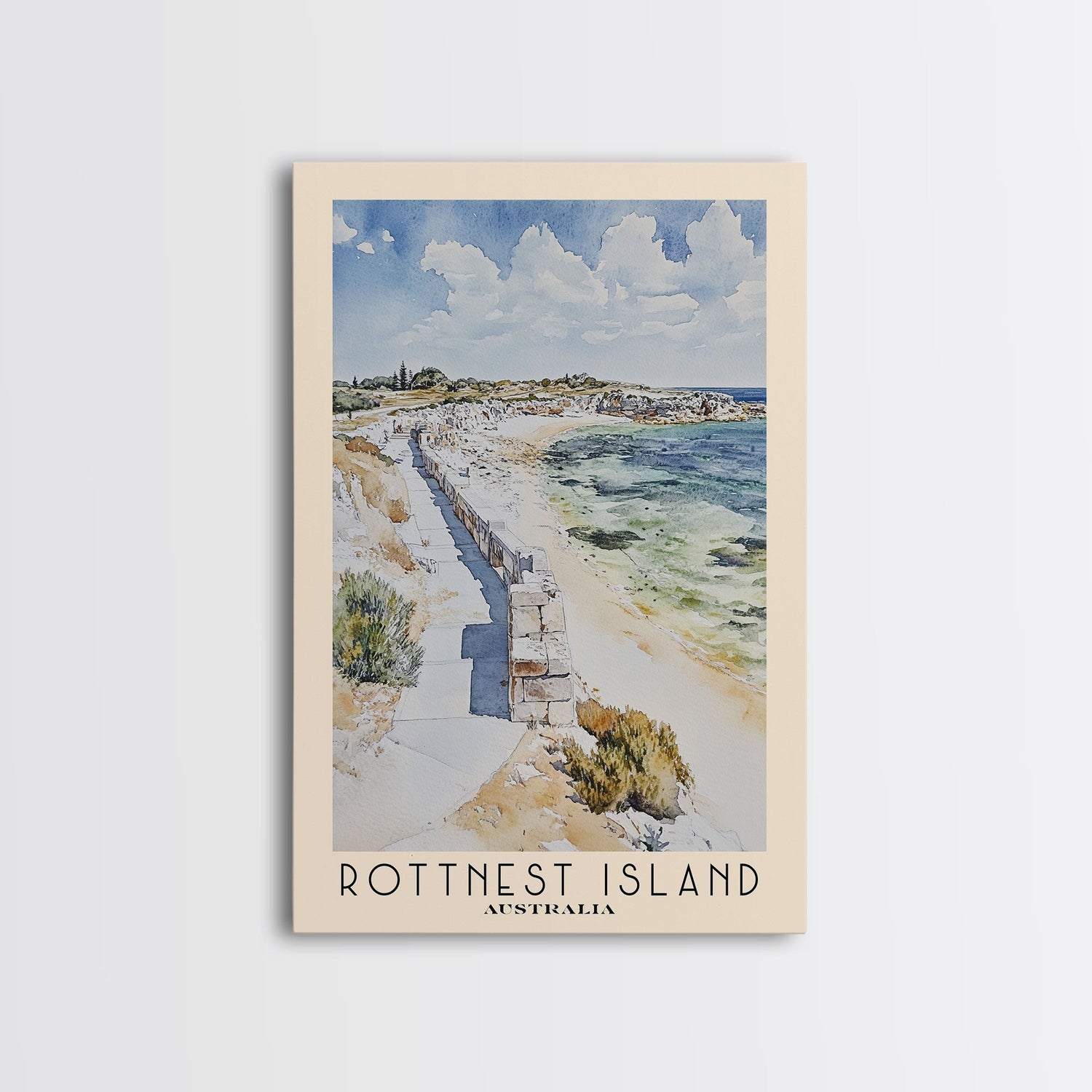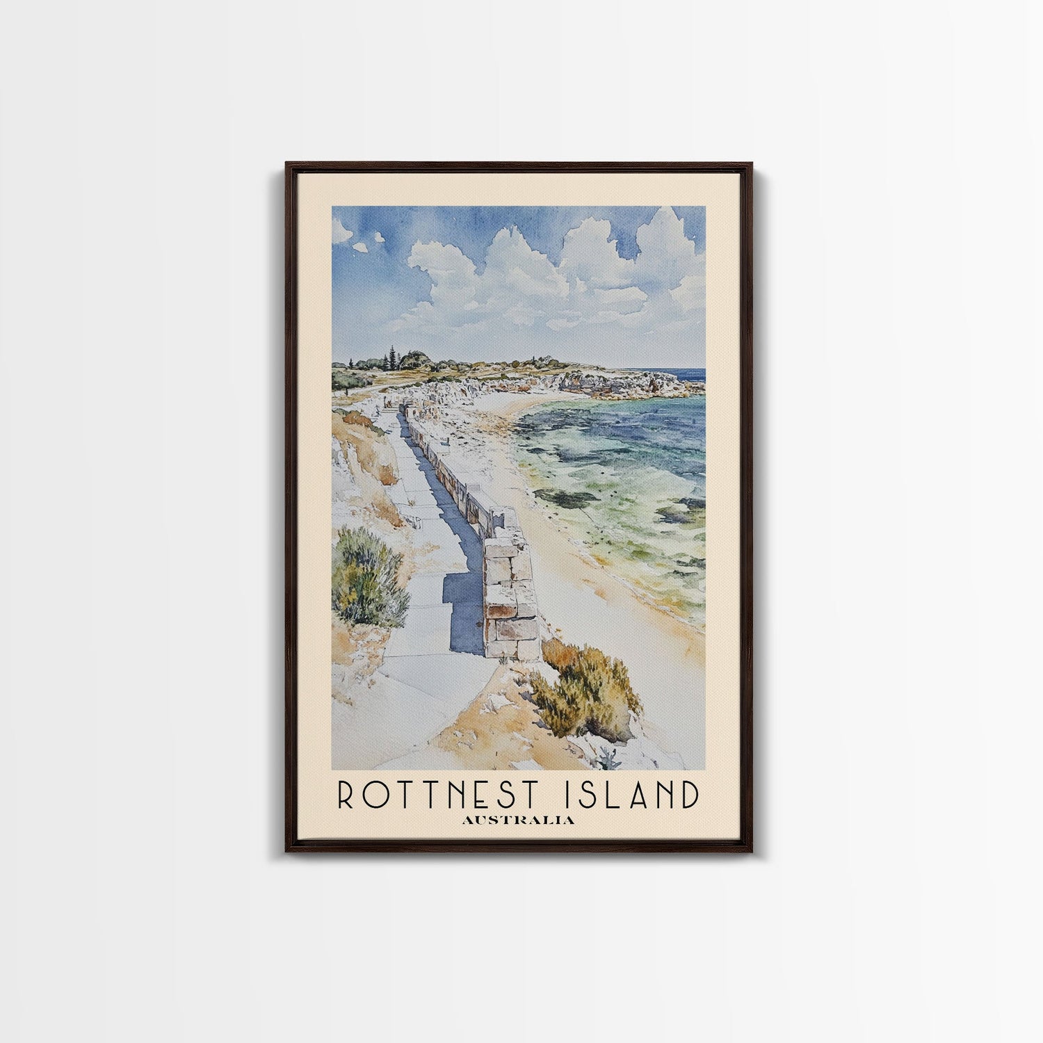 Rottnest Island, Australia Watercolor Print, Vacation Gift, Australia Wall Art, Beach Painting, Beach Decor, Large Wall Art, Wood Frame Art
