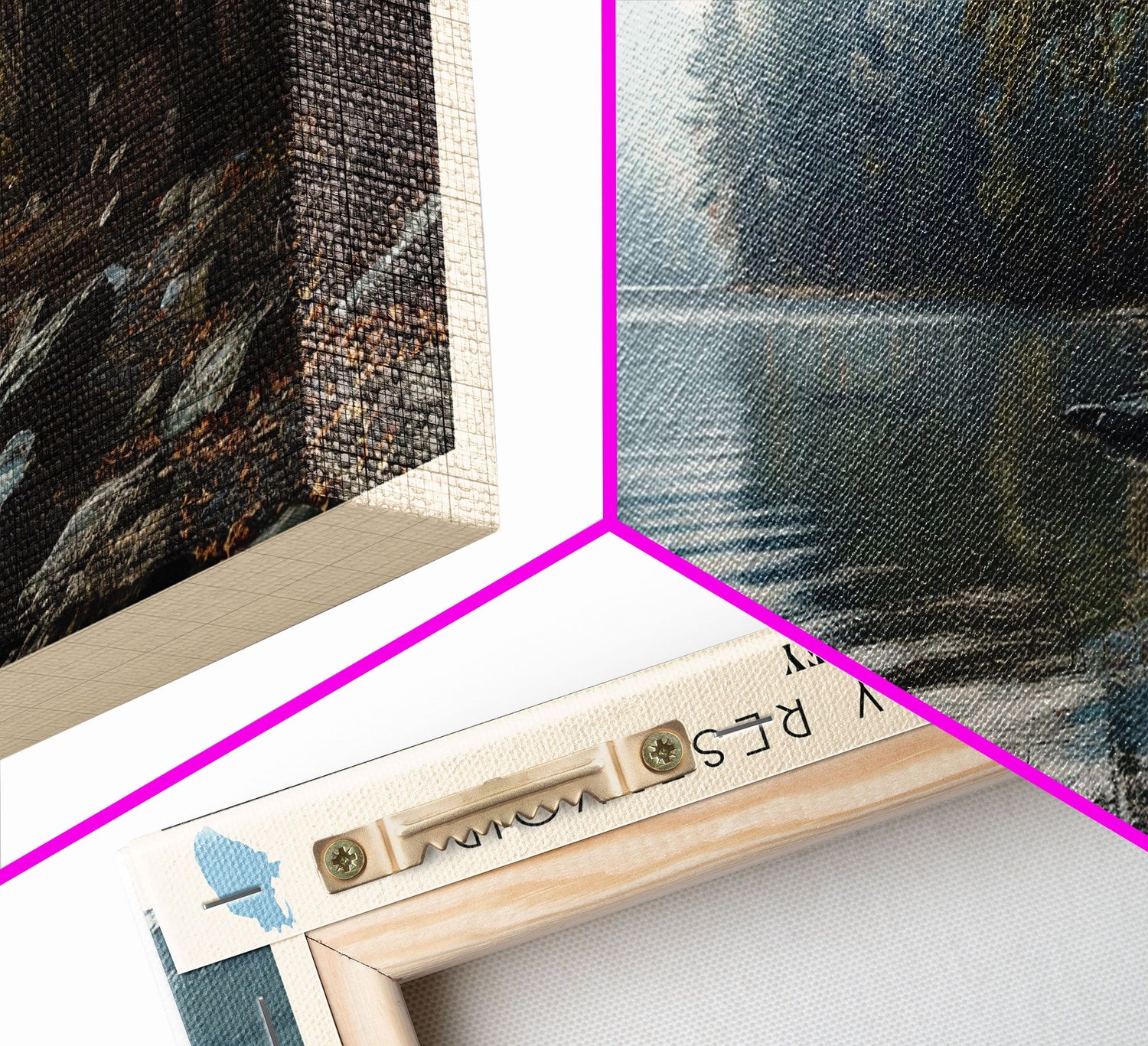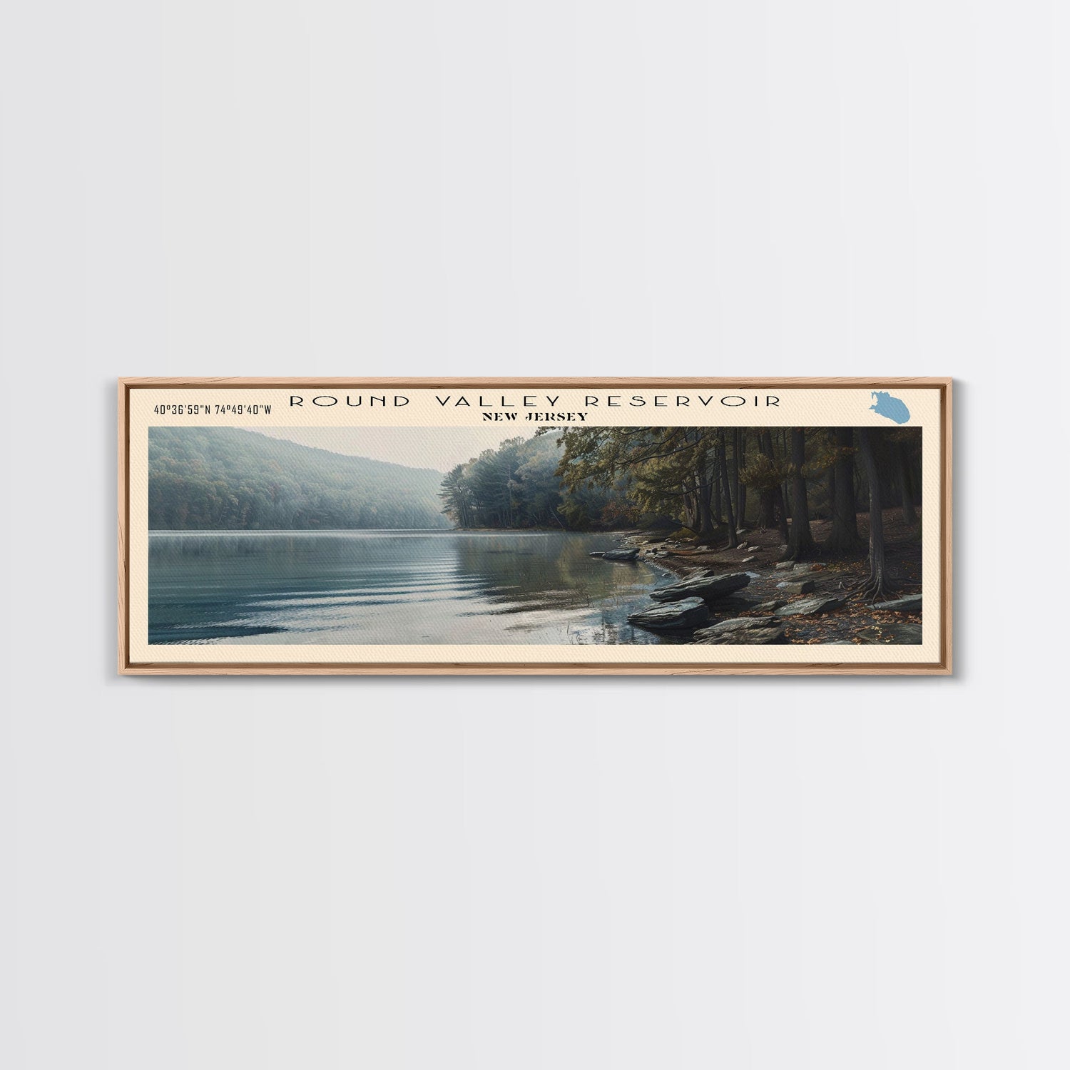 Round Valley Reservoir New Jersey Framed Canvas Print, Lake House Decor, Panoramic Wall Art, Travel Poster, Tranquil Landscape, Modern Art