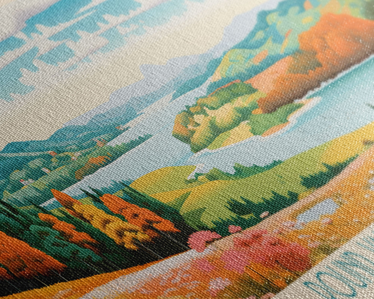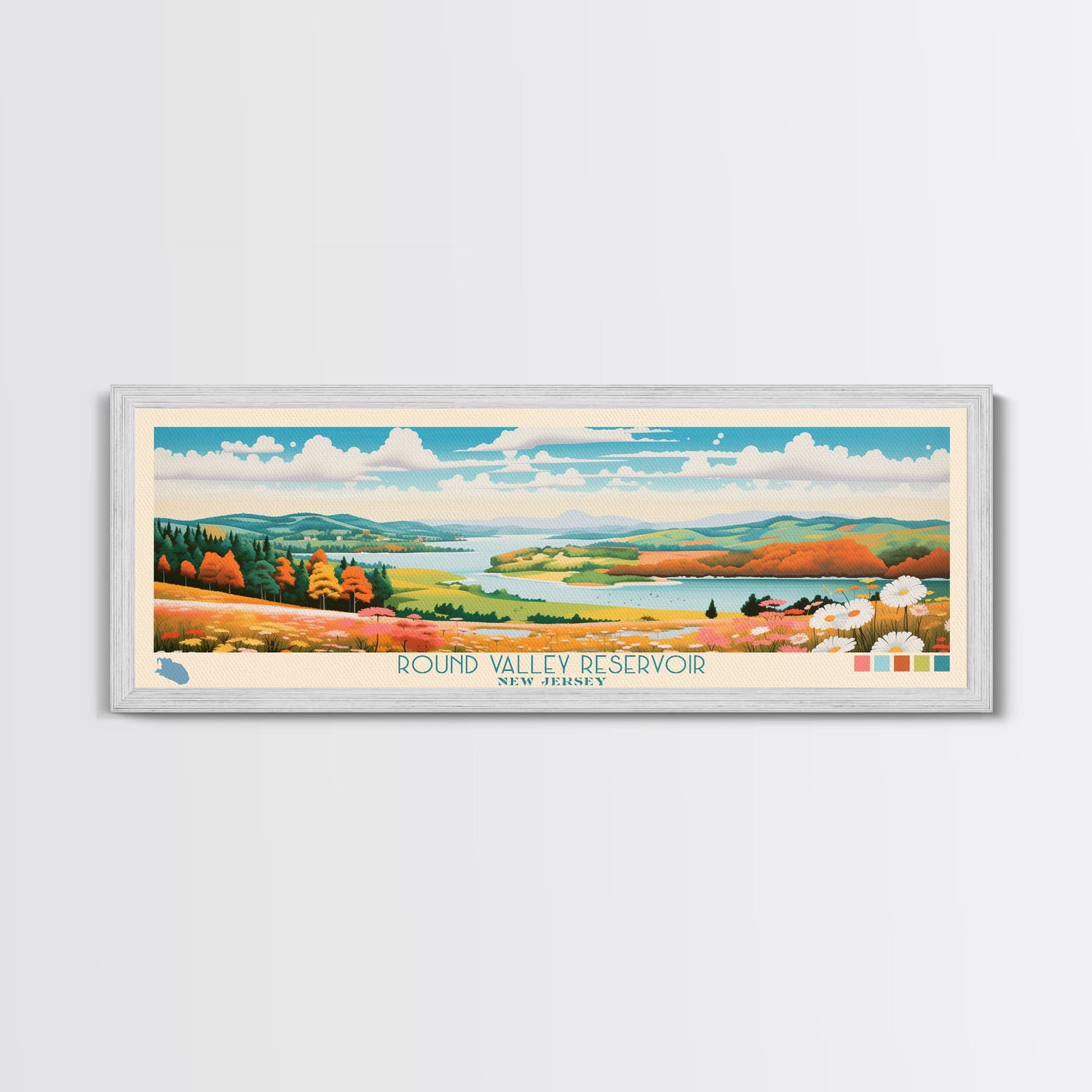 Round Valley Reservoir, New Jersey Framed Canvas Print, Panoramic Travel Poster, Midcentury Modern Art, Home Decor, Pop Art, Wall Decoration