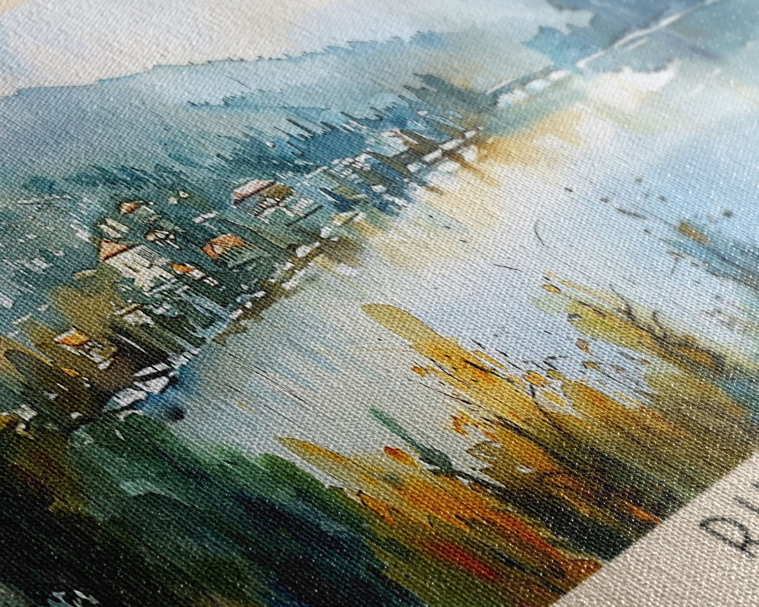 Most of our canvases are made in the USA, with the exception of canvases ordered with the light oak unstained frames, and any large canvases (24x48, 30x60, 16x48 and 20x60) ordered WITH a frame. These are temporarily made in and shipped from Europe, while we try to find a more consistent supplier in the USA.