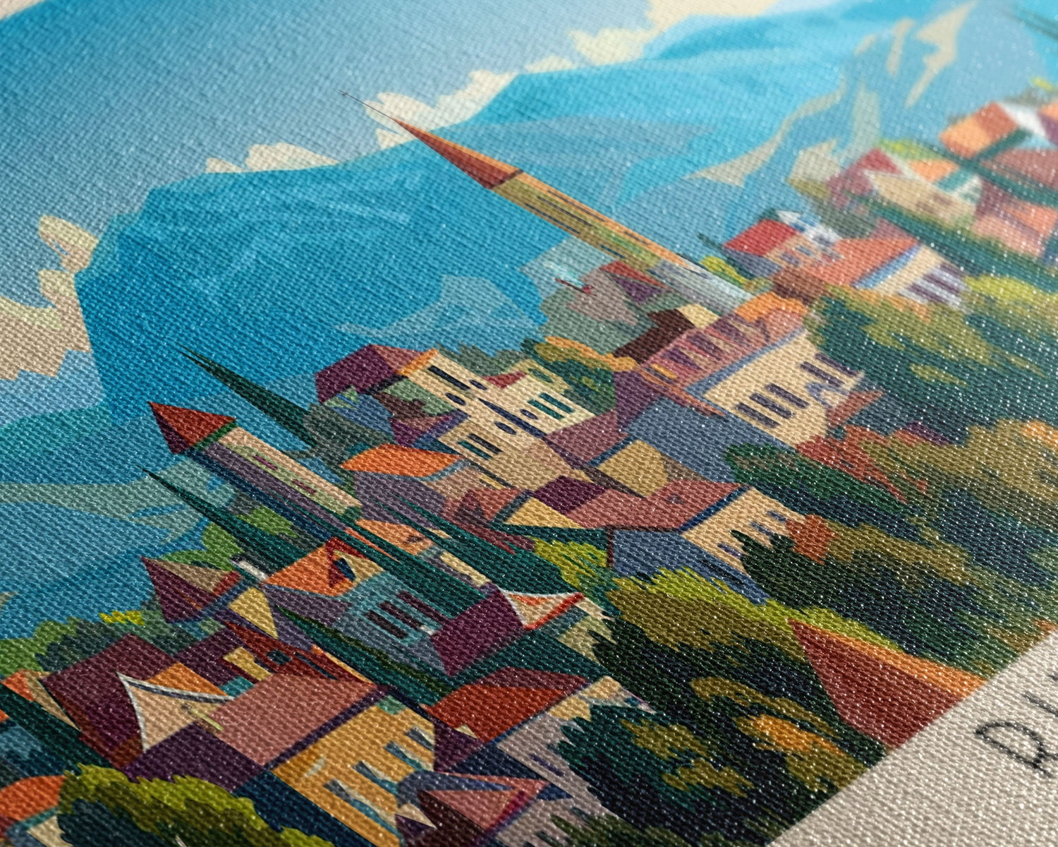 Most of our canvases are made in the USA, with the exception of canvases ordered with the light oak unstained frames, and any large canvases (24x48, 30x60, 16x48 and 20x60) ordered WITH a frame. These are temporarily made in and shipped from Europe, while we try to find a more consistent supplier in the USA.