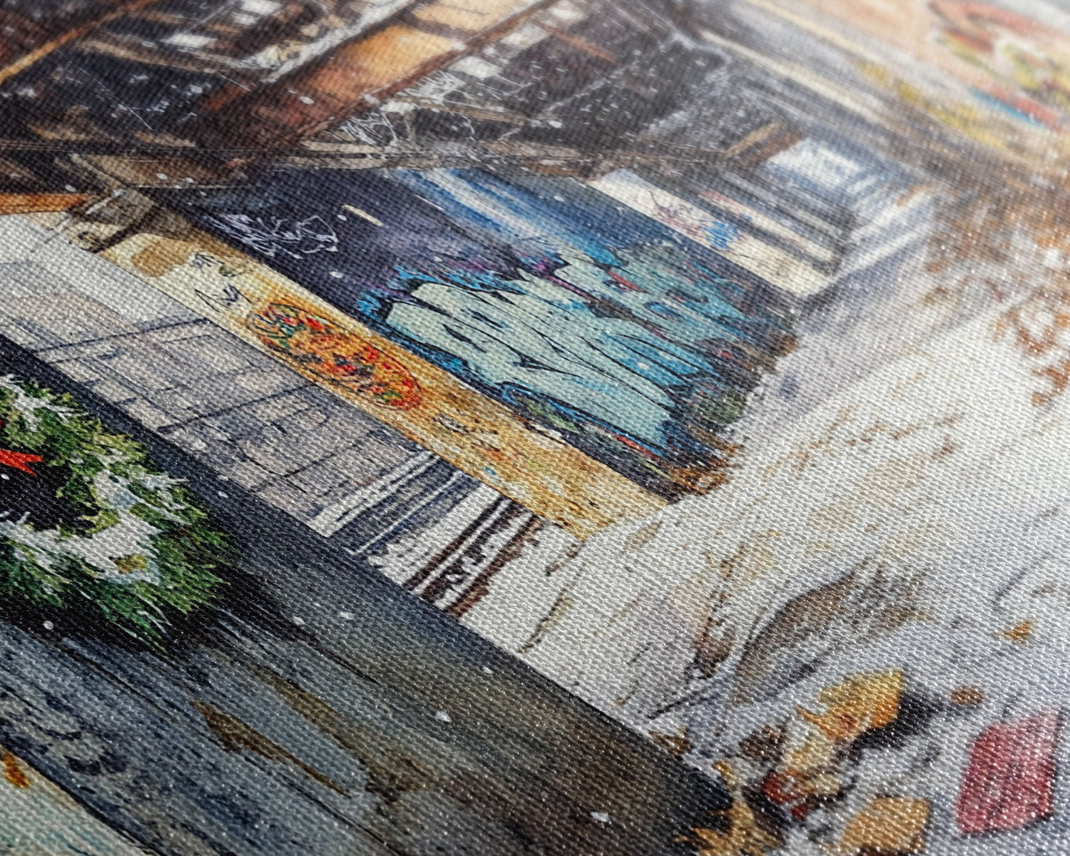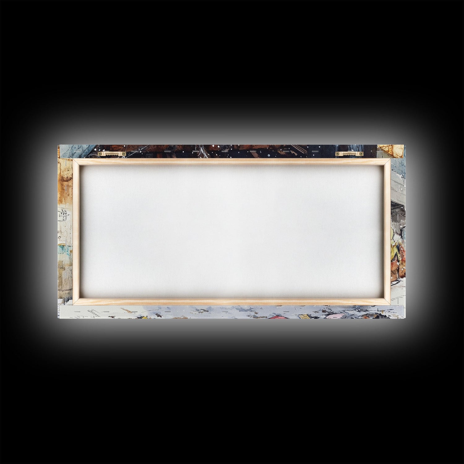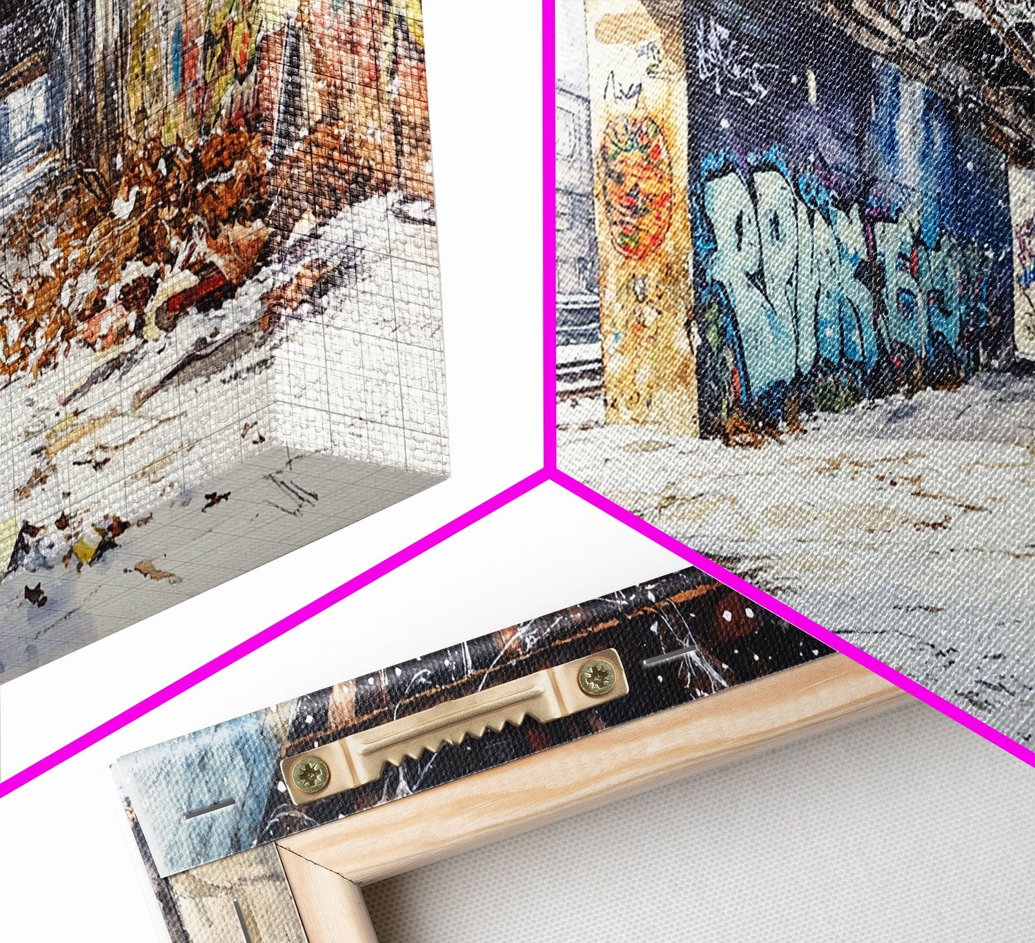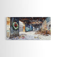 Rustic Urban Wreath Holiday Decor Framed Canvas Print, Christmas Scene with Snowfall and Graffiti Wall Perfect Holiday Wall Art - 10x20 Inches / No Frame - Stretched Canvas Only is backordered and will ship as soon as it is back in stock.