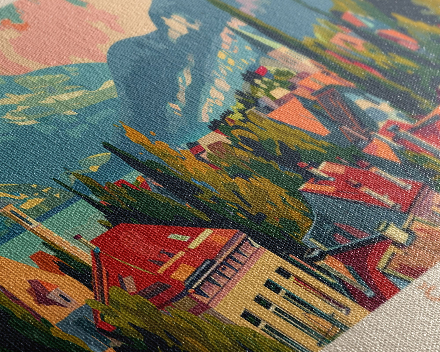 Most of our canvases are made in the USA, with the exception of canvases ordered with the light oak unstained frames, and any large canvases (24x48, 30x60, 16x48 and 20x60) ordered WITH a frame. These are temporarily made in and shipped from Europe, while we try to find a more consistent supplier in the USA.