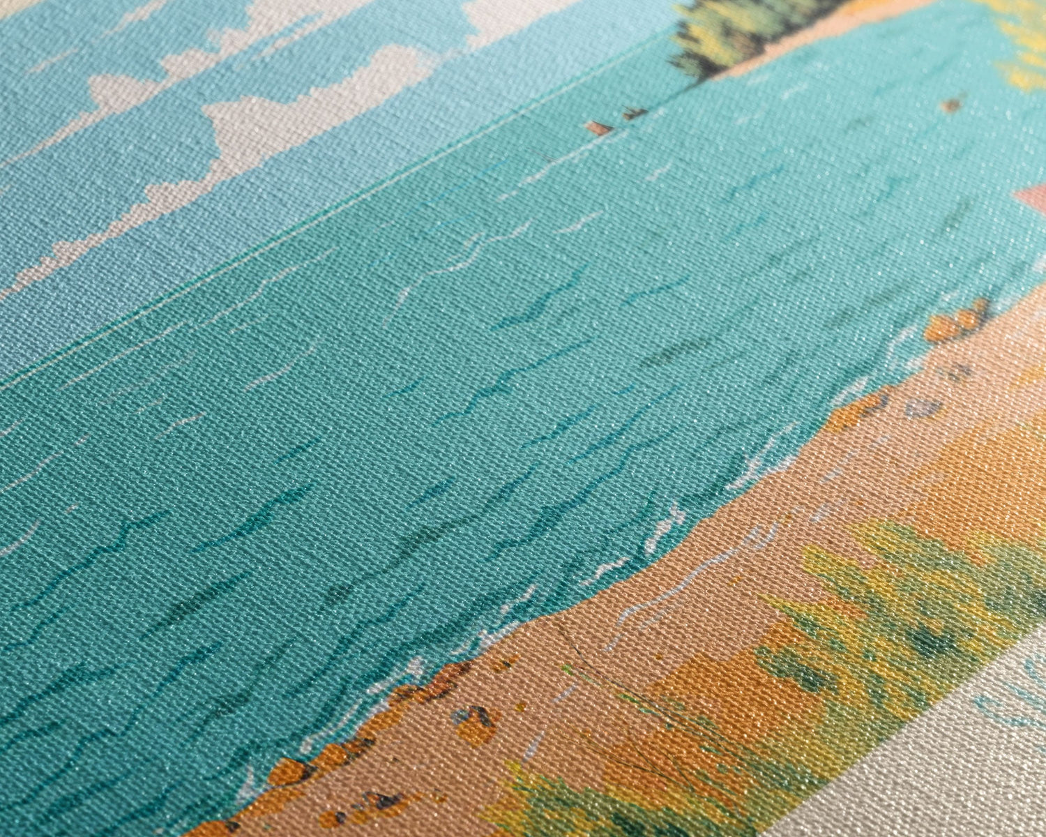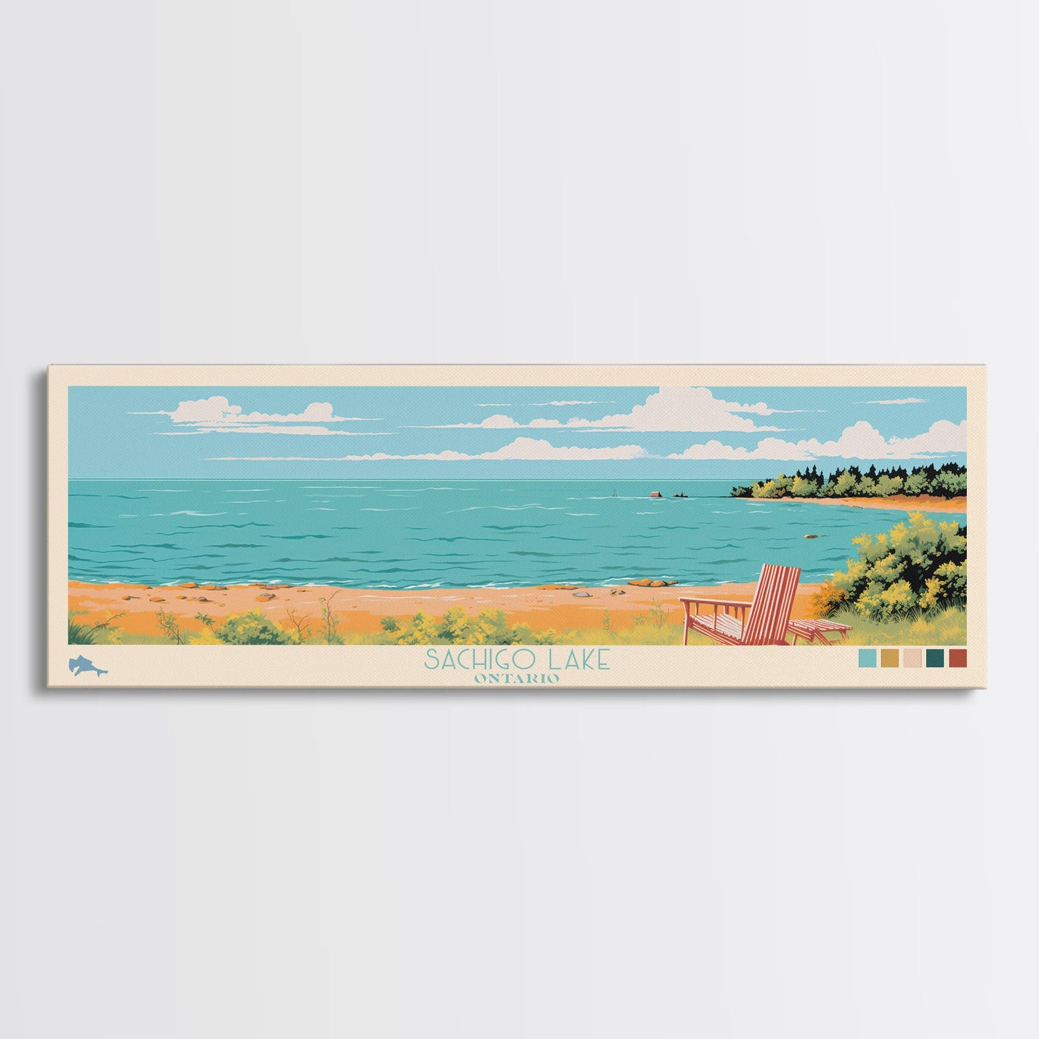 Sachigo Lake, Ontario Framed Canvas Print, Panoramic Wall Art, Midcentury Modern Decor, Living Room Art, Pop Art, Travel Poster