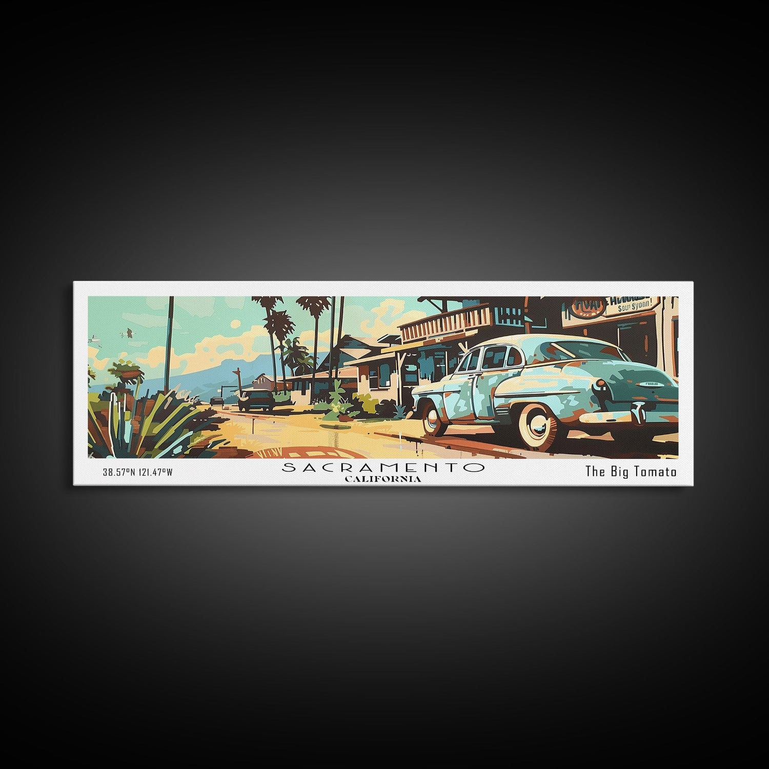 Sacramento California Panoramic Painting, Mid Century Modern Framed Canvas Print, Retro Pop Art Travel Poster, Living Room and Office Wall Art - 10x30 Inches / No Frame - Stretched Canvas Only is backordered and will ship as soon as it is back in stock.