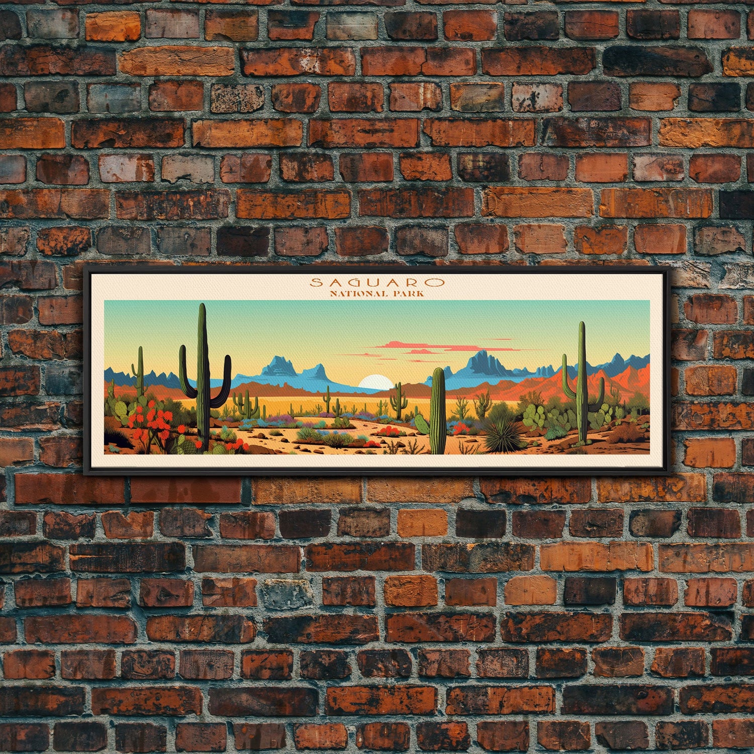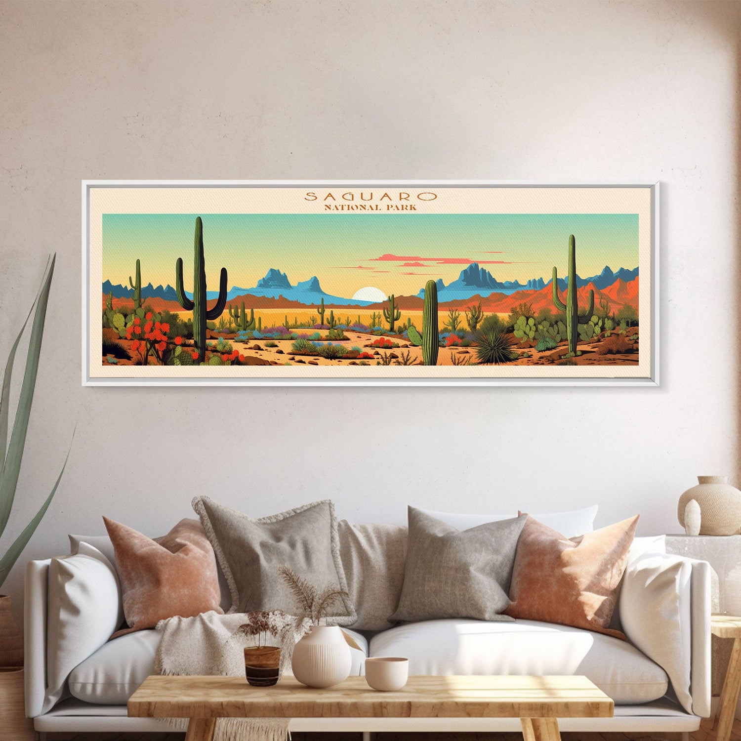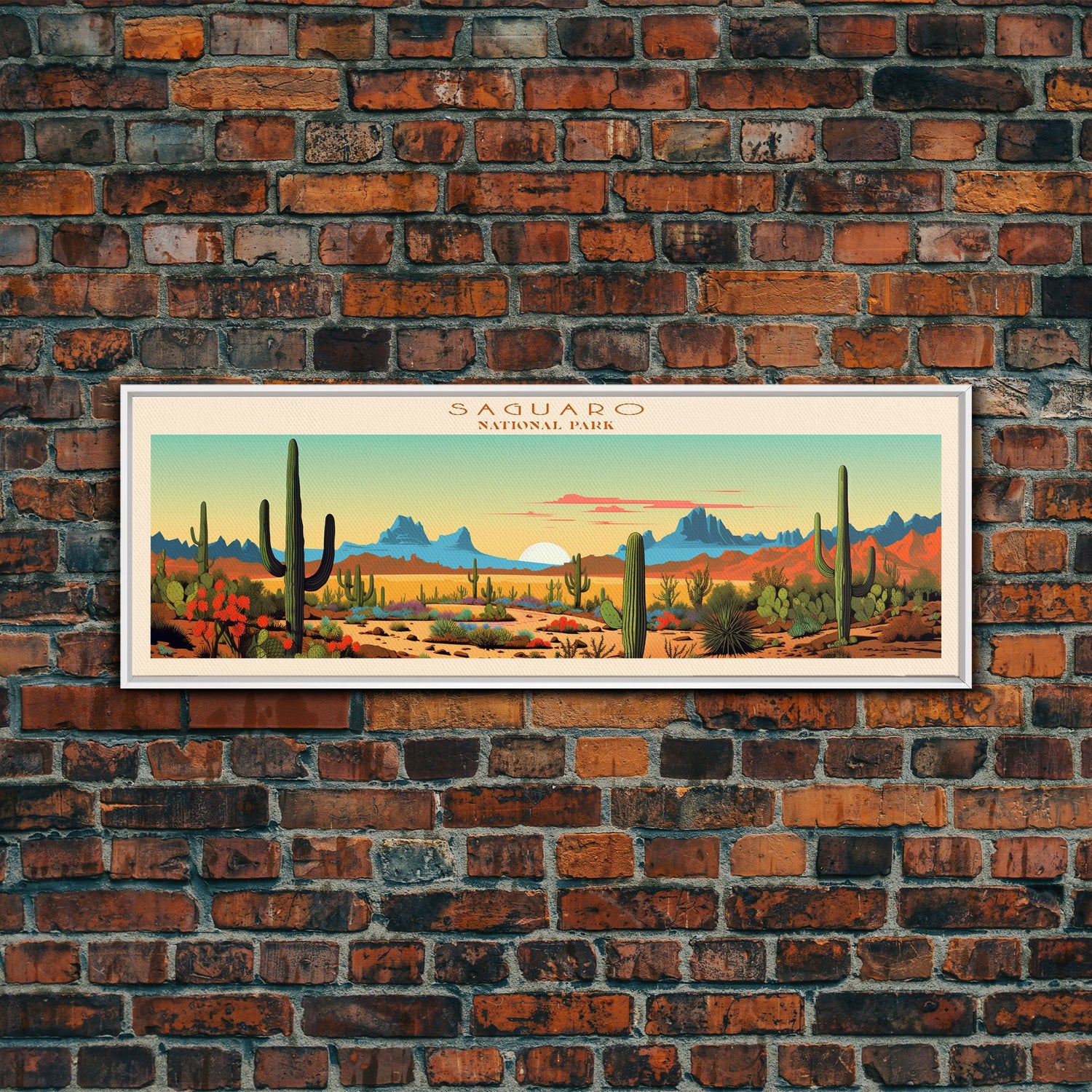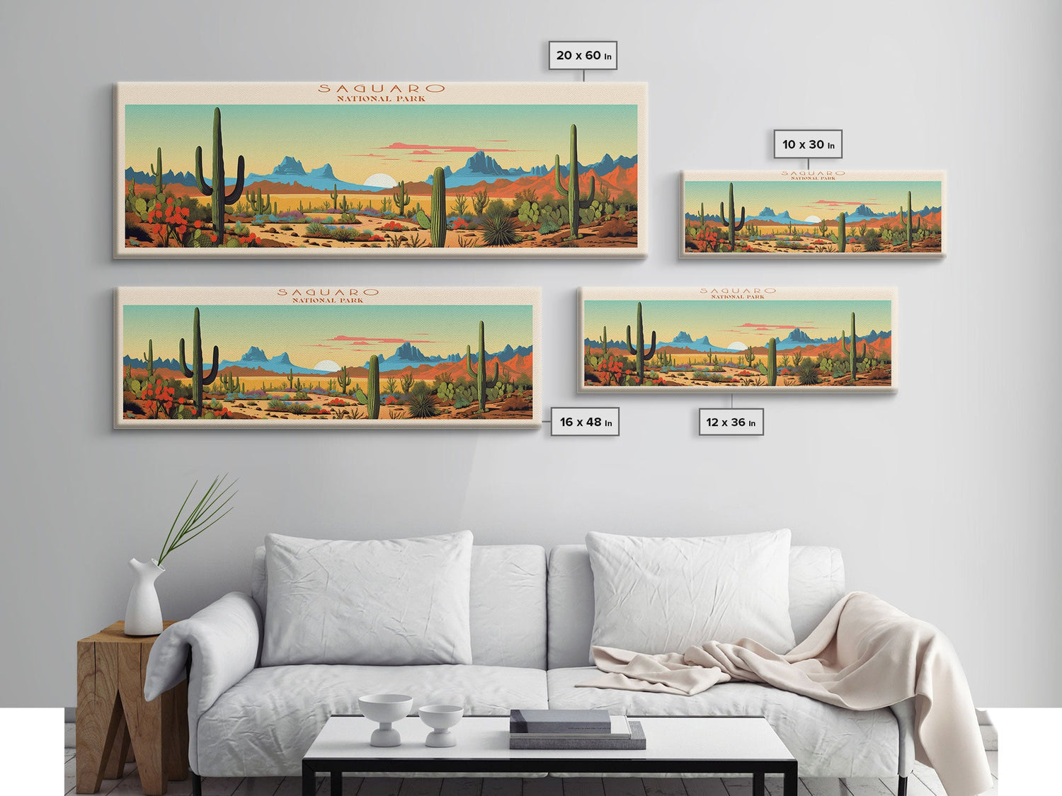 Saguaro National Park Panoramic Arizona Travel Art, National Park Print, Minimalist Travel Art, Midcentury Modern Style Landscape
