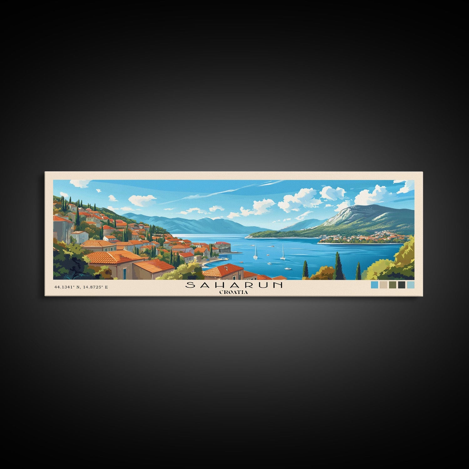 Saharun, Croatia Panoramic Print, Vacation Gift, Croatia Wall Art, Beach Painting, Beach Decor, Beach Or Lakehouse Art - 10x30 Inches / No Frame - Stretched Canvas Only is backordered and will ship as soon as it is back in stock.