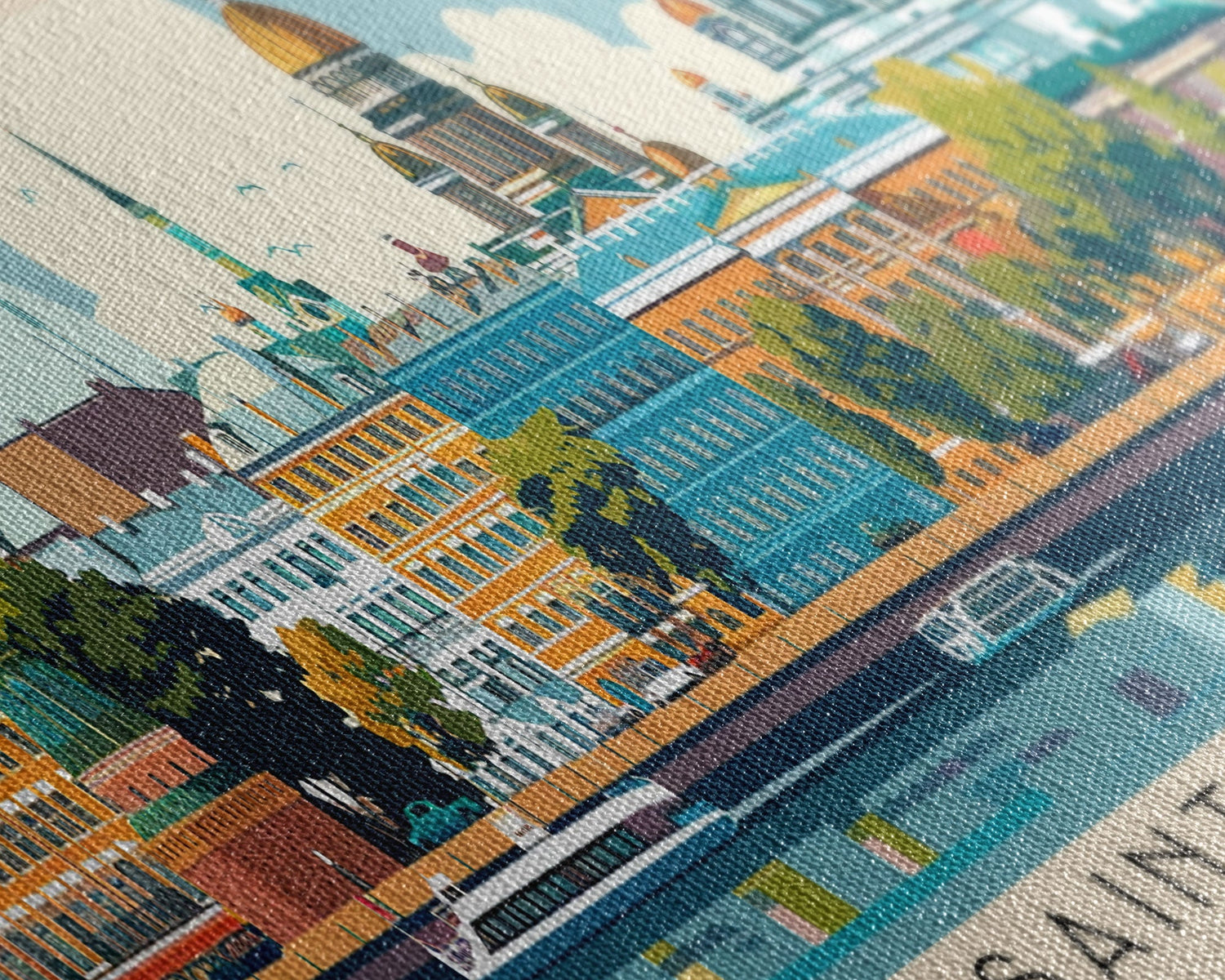 Saint Etienne France Panoramic Travel Poster, Framed Canvas Print or Metal Wall Art, Travel Art, Home Decor, Panoramic Painting, Midcentury Art