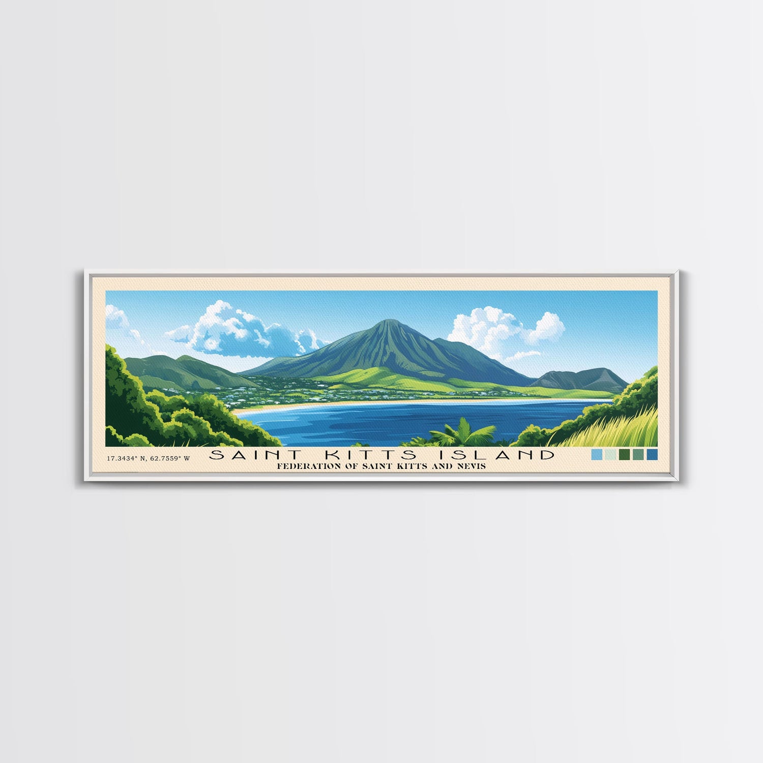 Saint Kitts Island, Federation of Saint Kitts and Nevis Panoramic Print, Vacation Gift, Federation of Saint Kitts and Nevis Wall Art, Vacation Wall Art, Vacatation Memories, Beach Decor, Beach Or Lakehouse Art
