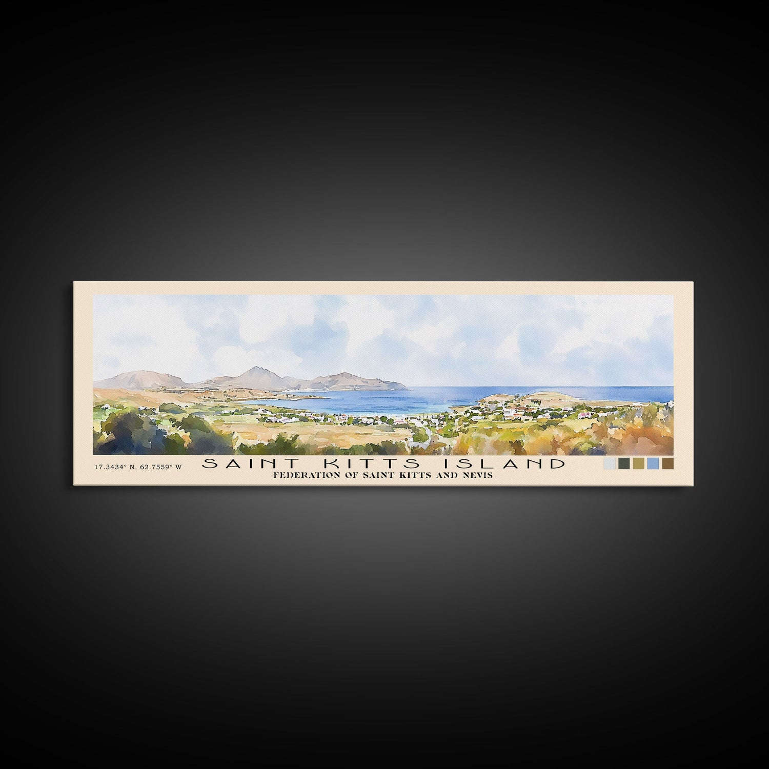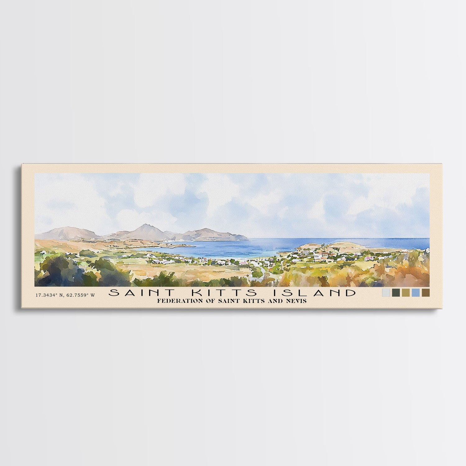 Saint Kitts Island, Federation of Saint Kitts and Nevis Watercolor Beach Print, Vacation Gift, Federation of Saint Kitts and Nevis Wall Art, Beach Painting, Beach Decor, Beach Painting - 10x30 Inches / No Frame - Stretched Canvas Only is backordered and will ship as soon as it is back in stock.