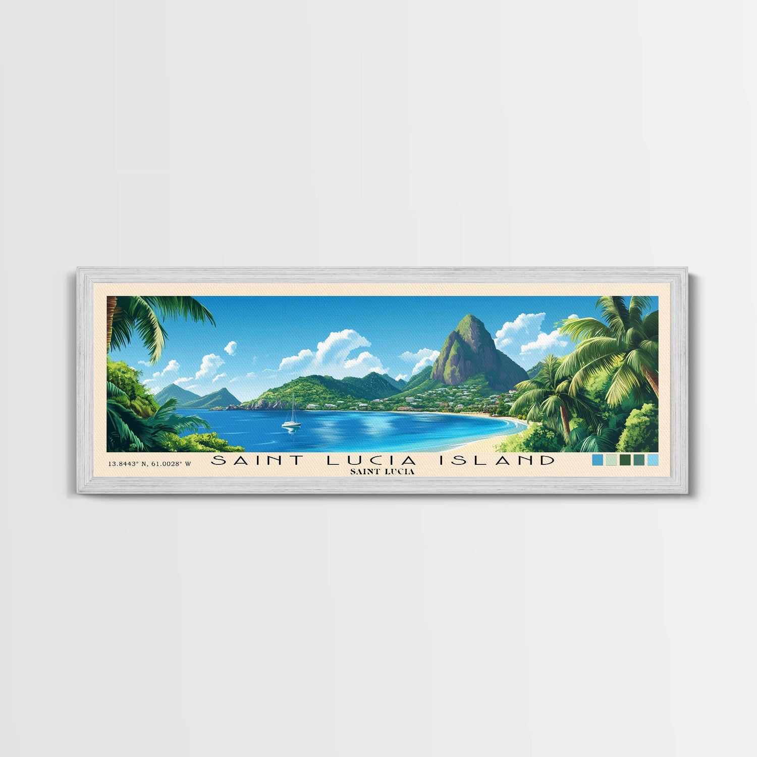 Saint Lucia Island, Saint Lucia Panoramic Print, Vacation Gift, Saint Lucia Wall Art, Beach Painting, Beach Decor, Beach Or Lakehouse Art
