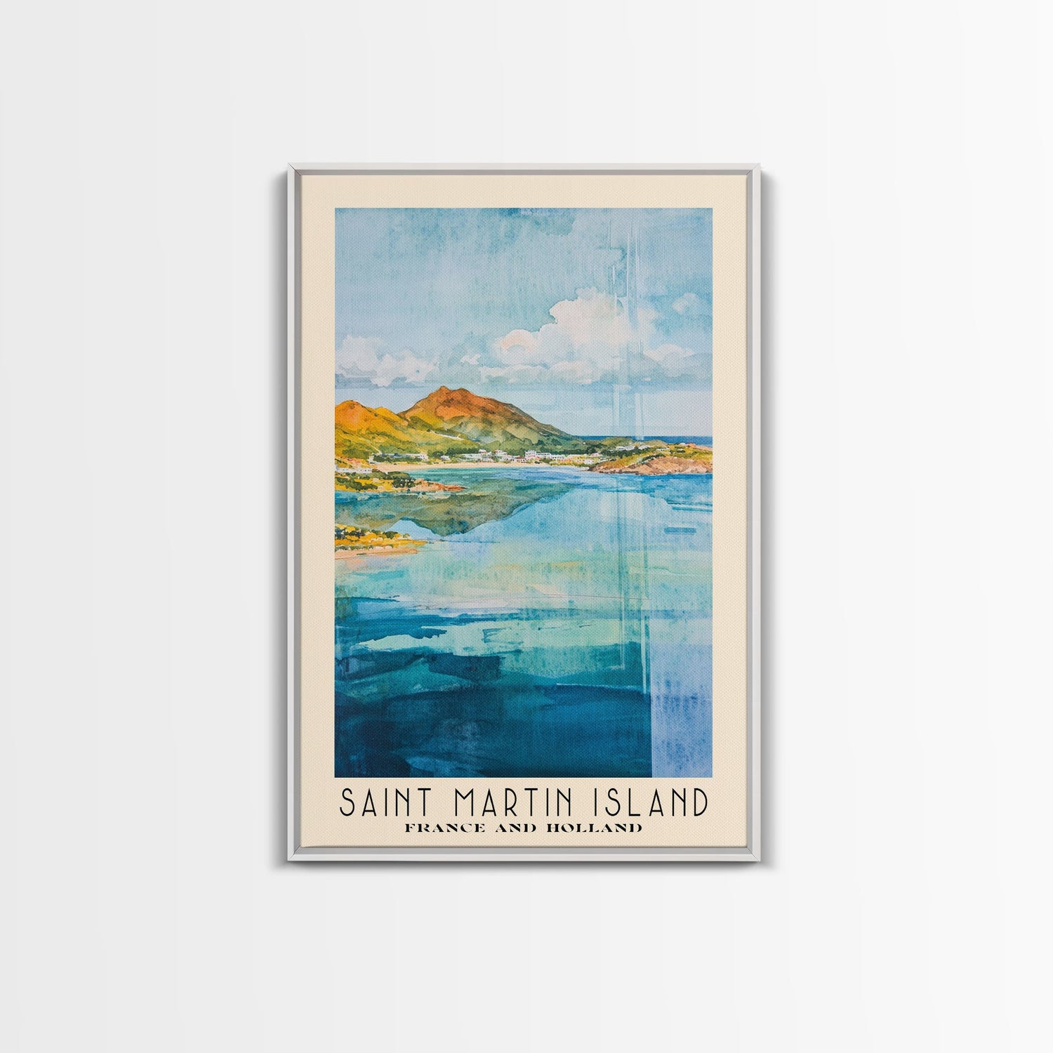 Saint Martin Island, France and Holland Watercolor Beach Print, Vacation Gift, France and Holland Wall Art, Framed Canvas Print, Framed Beach Painting