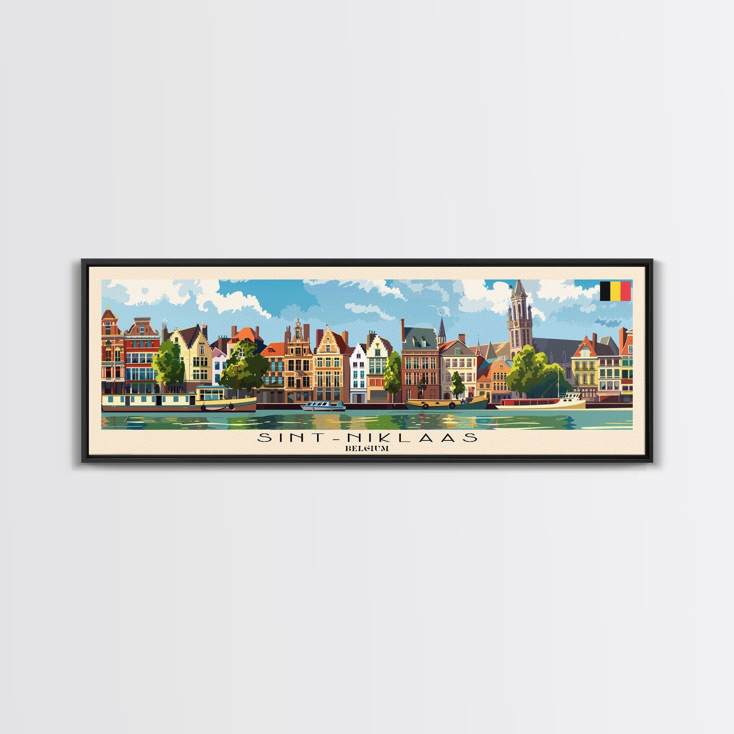 Saint Niklaas Belgium Wall Art, Panoramic Travel Poster, Panoramic Framed Canvas Print, City Wall Art, Wall Hanging Home Decor, Travel Art