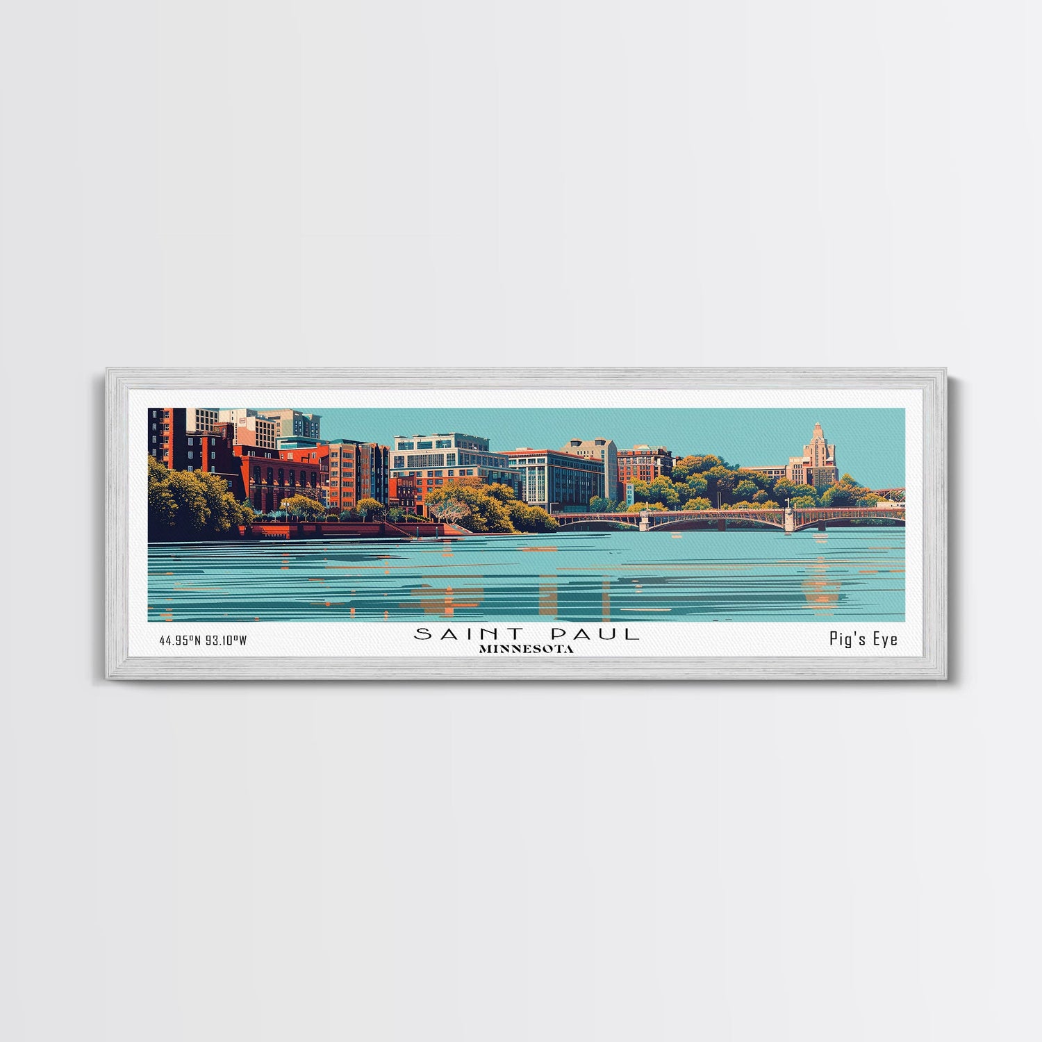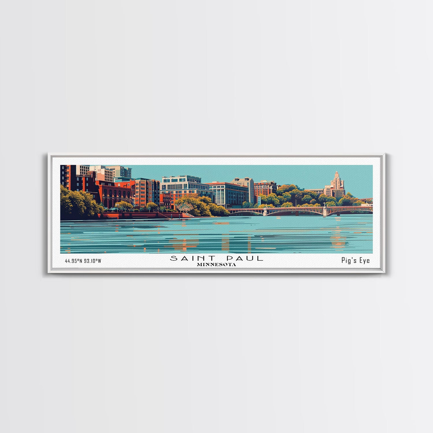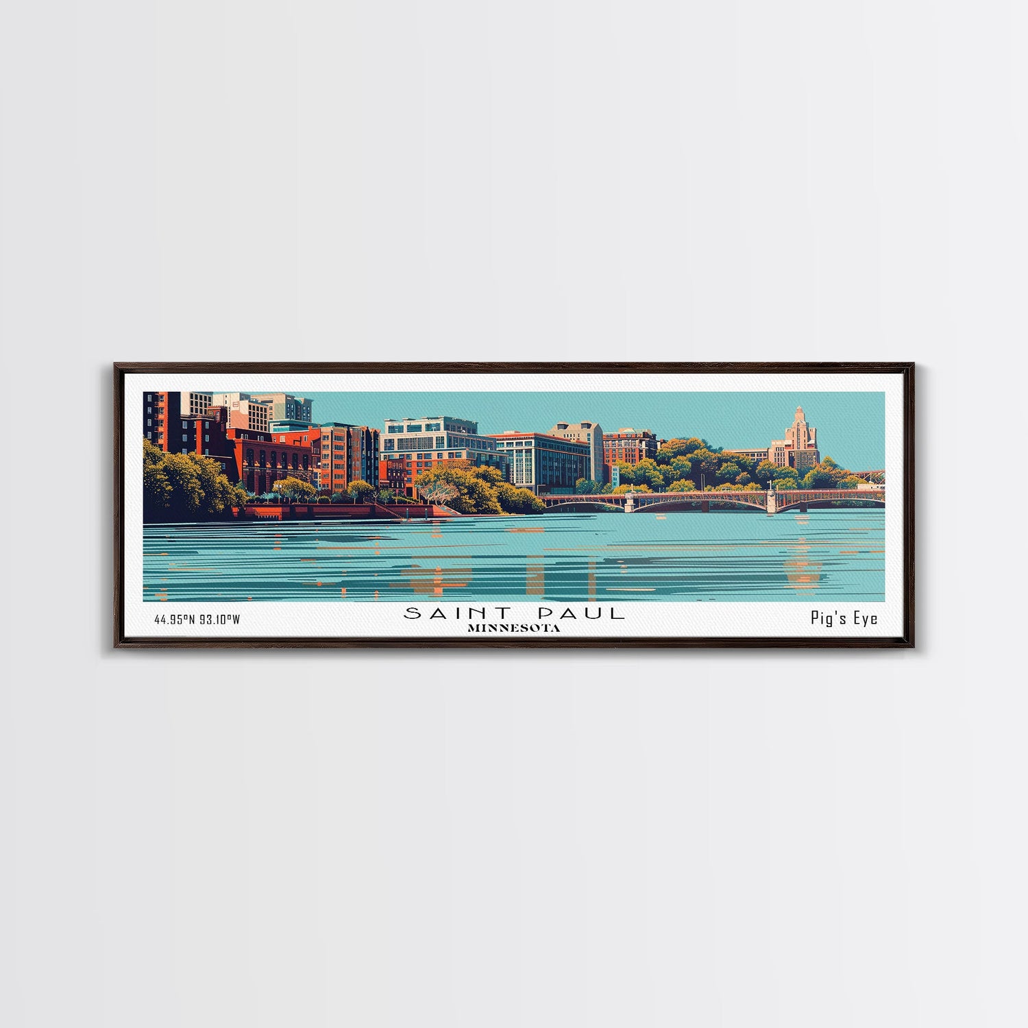 Saint Paul Minnesota Panoramic Wall Art, Mid Century Modern Framed Canvas Print, Retro Pop Art Cityscape, Travel Poster, Living Room Decor
