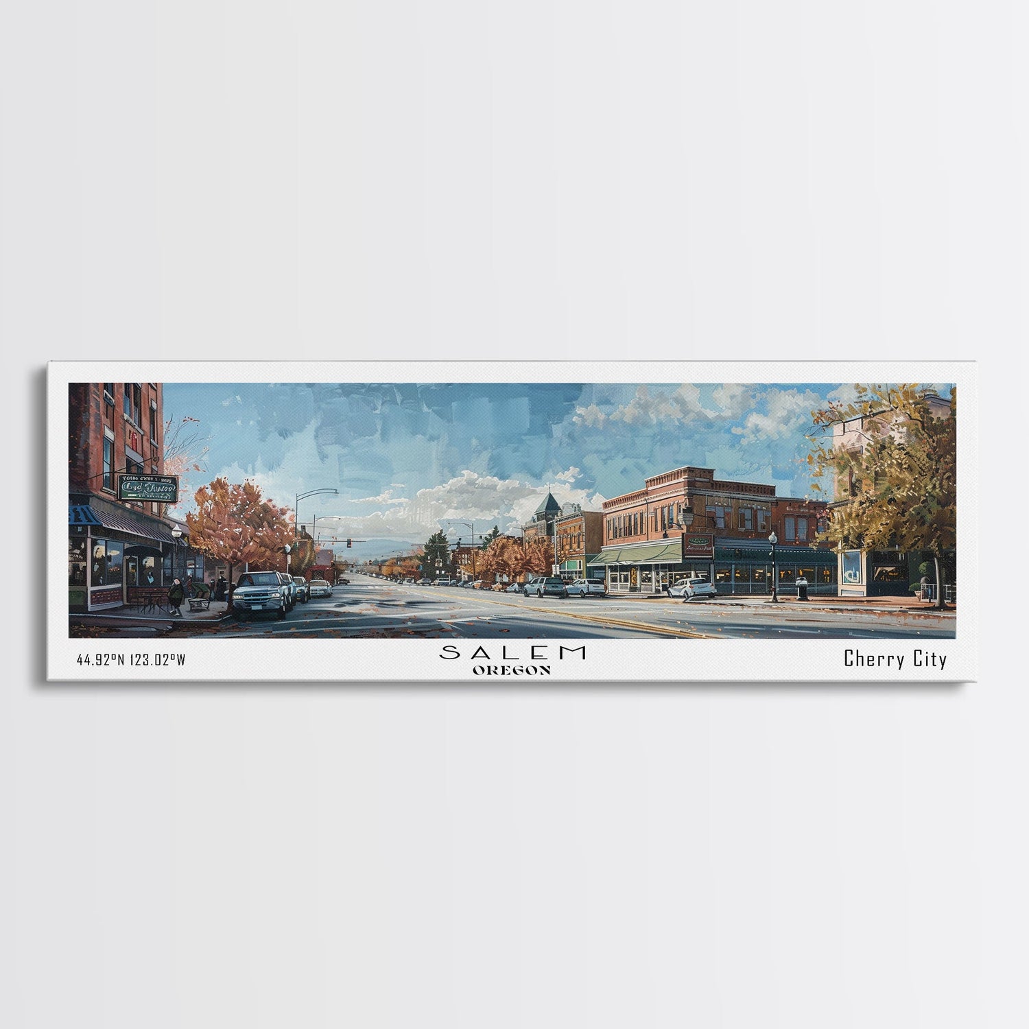 Salem Oregon Panoramic Print, Beautiful Framed Canvas Print, City Travel Poster, Home Decoration, Wall Art, Office Gift