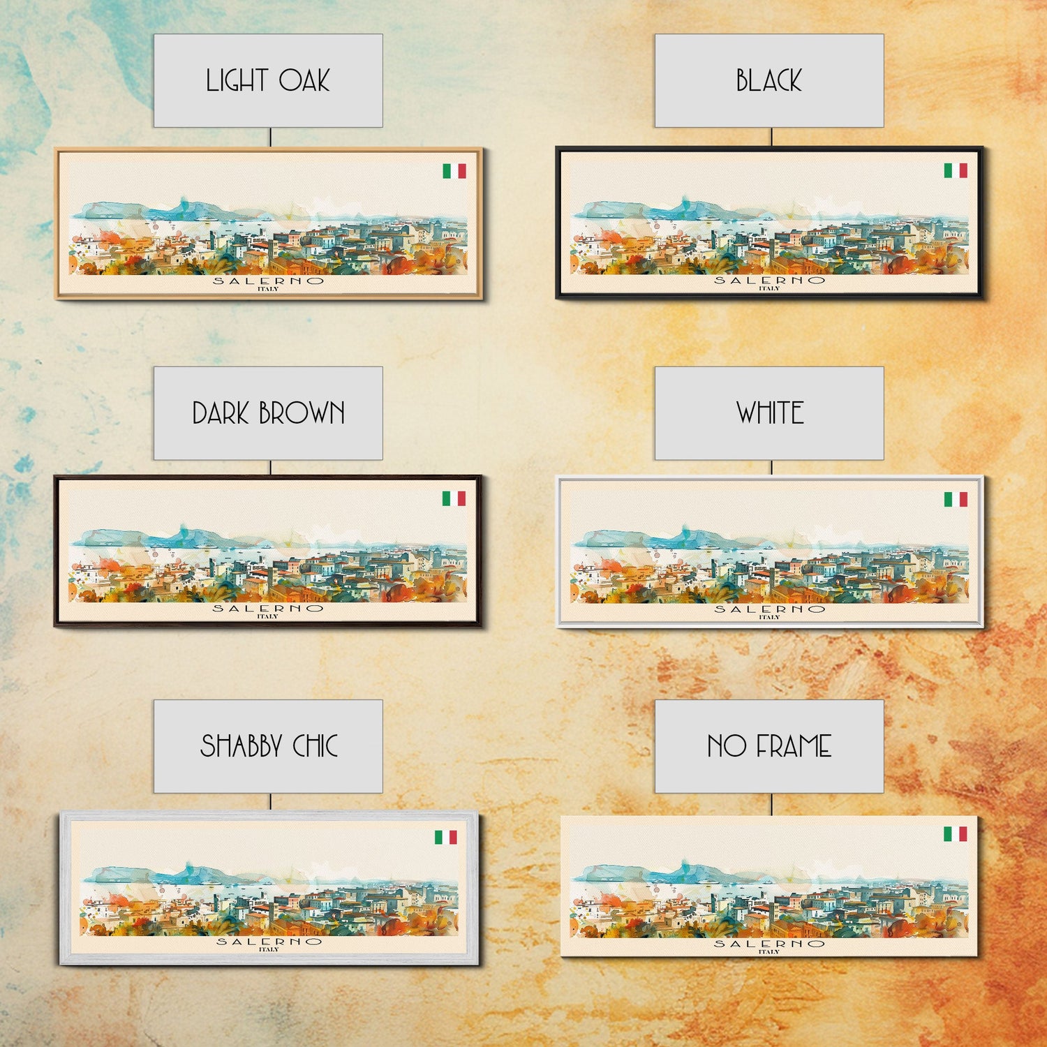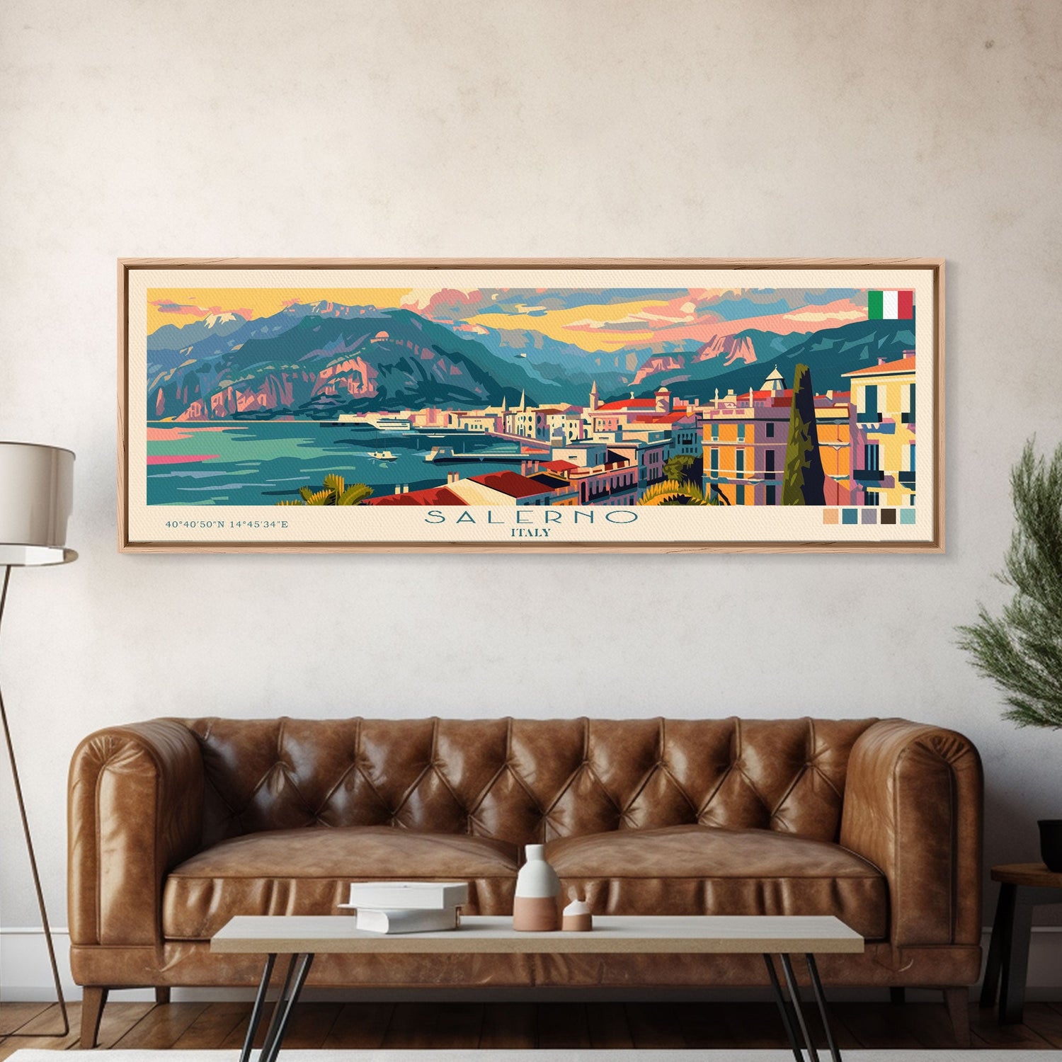 Salerno Italy Travel Art, City Art, Framed Canvas Print or Metal Wall Art, Europe Travel Poster, Panoramic Wall Art, Extra Wide Wall Art