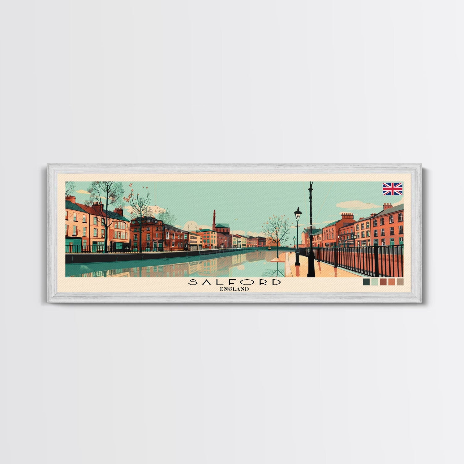 Salford, England Panoramic Canvas Print, Salford, England Painting, England Art, Salford Travel Poster, Travel Art, Guest Room Painting - 10x30 Inches / No Frame - Stretched Canvas Only is backordered and will ship as soon as it is back in stock.