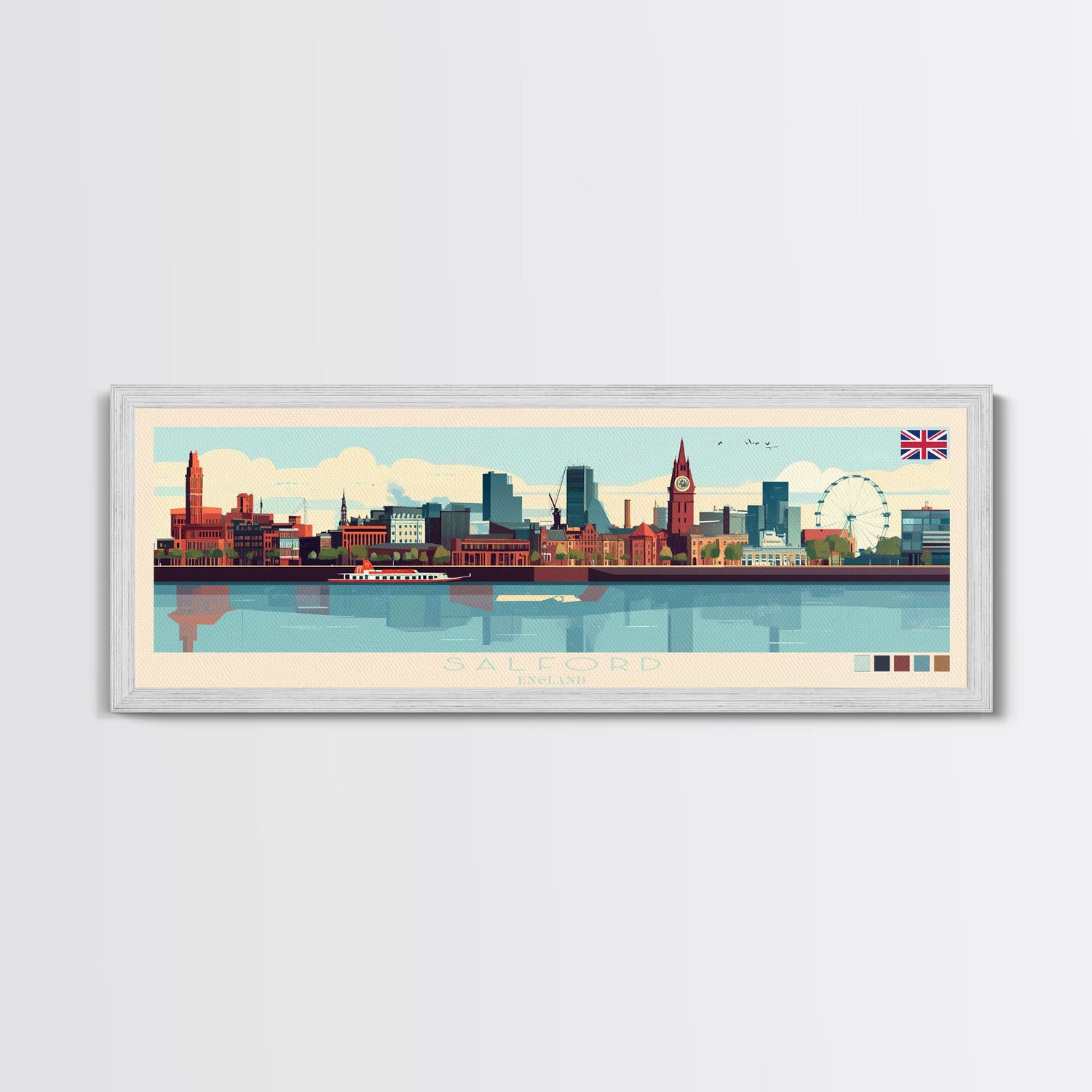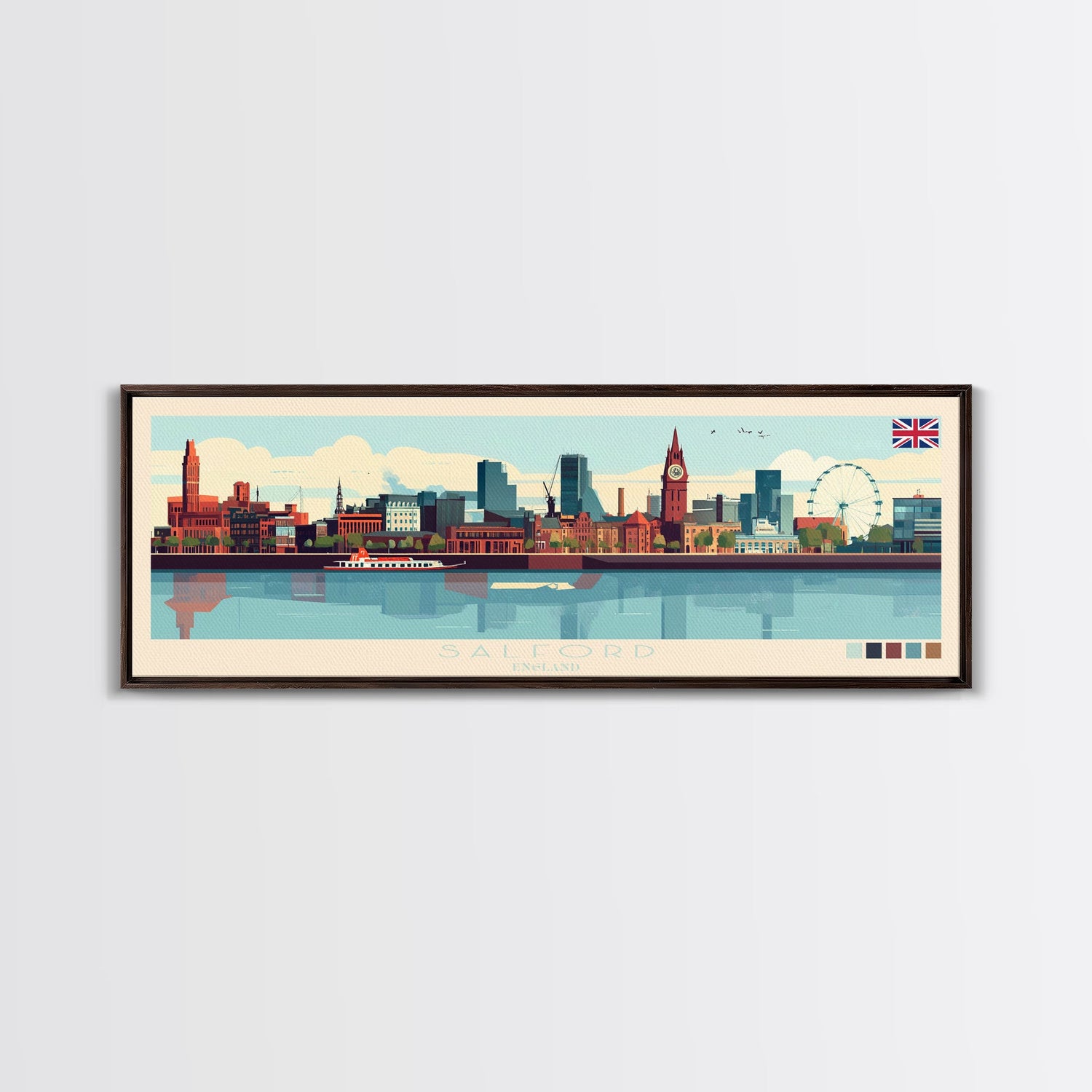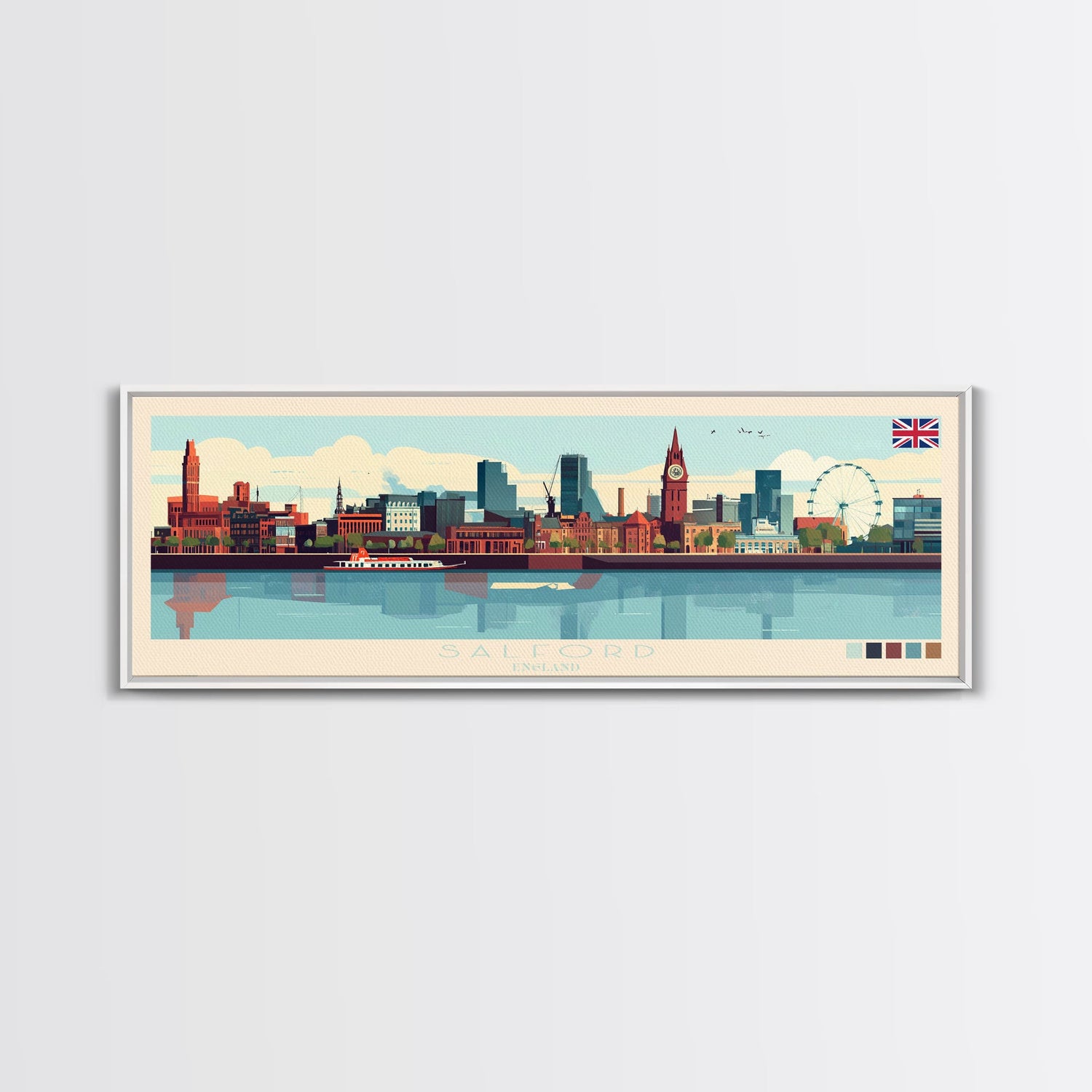 Salford, England Panoramic Travel Poster Canvas Print, Salford, England Painting, England Art, Salford Travel Art, Guest Room Painting