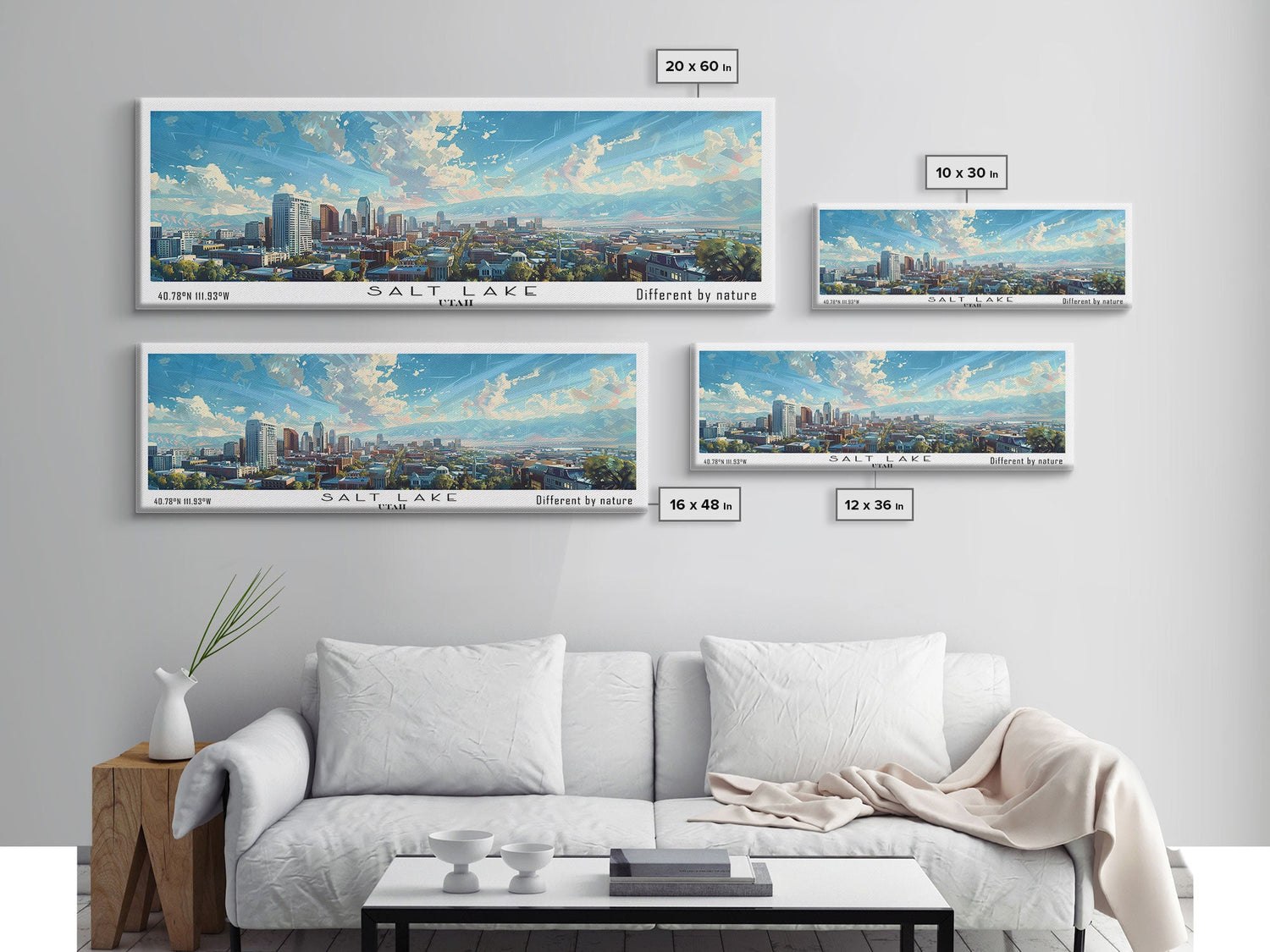 Salt Lake Utah Panoramic Print, Stylish Framed Canvas Print, City Travel Poster, Home Decoration, Office Wall Art