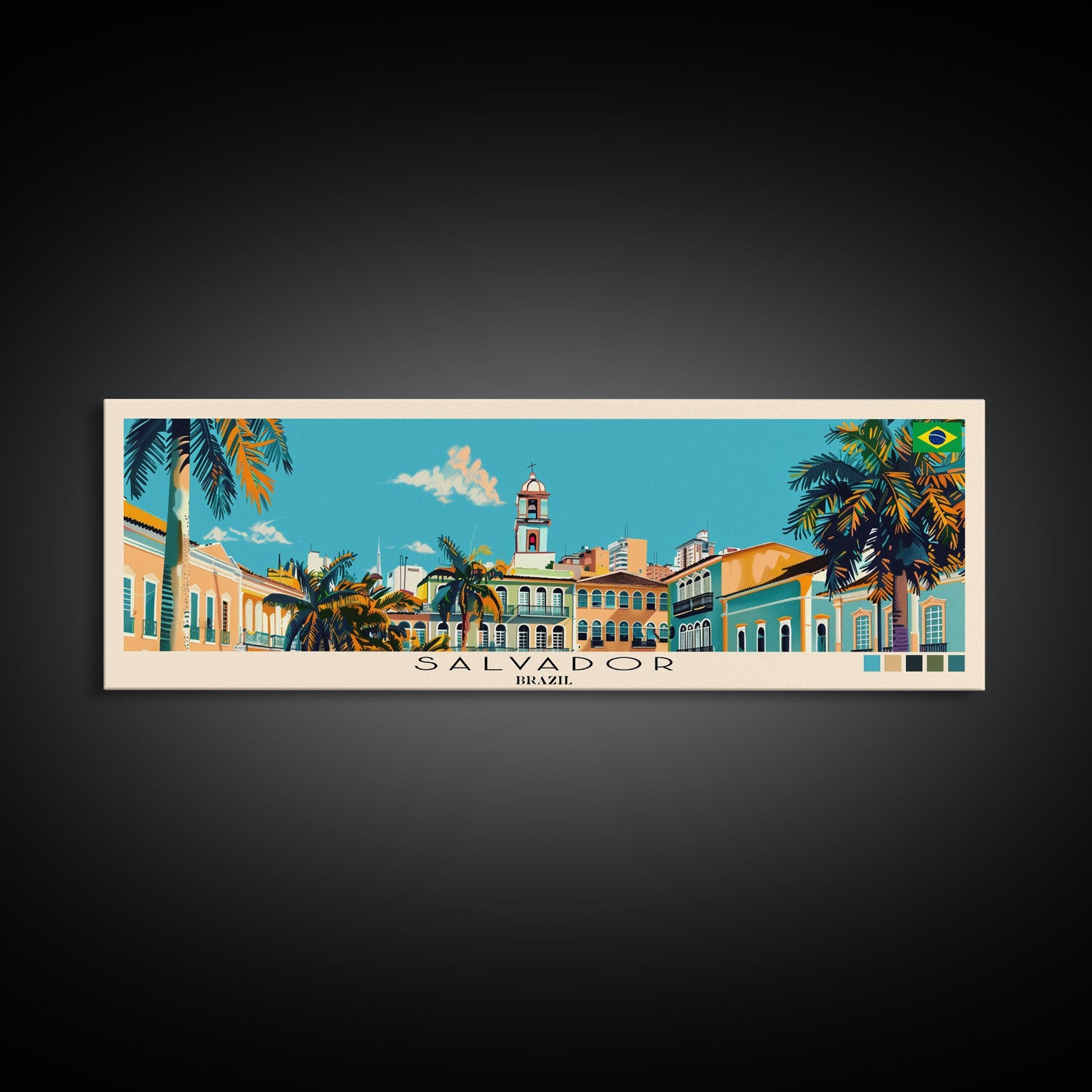 Salvador, Brazil Panoramic Canvas Print, Salvador, Brazil Painting, Brazil Art, Salvador Travel Poster, Travel Art, Guest Room Painting