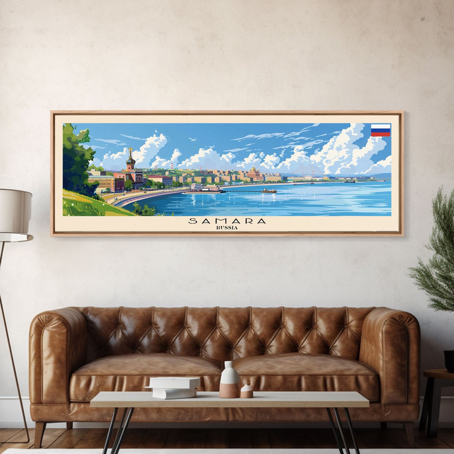 Samara Russia Wall Art, Panoramic Travel Poster, Panoramic Framed Canvas Print, City Wall Art, Wall Hanging Home Decor, Travel Art