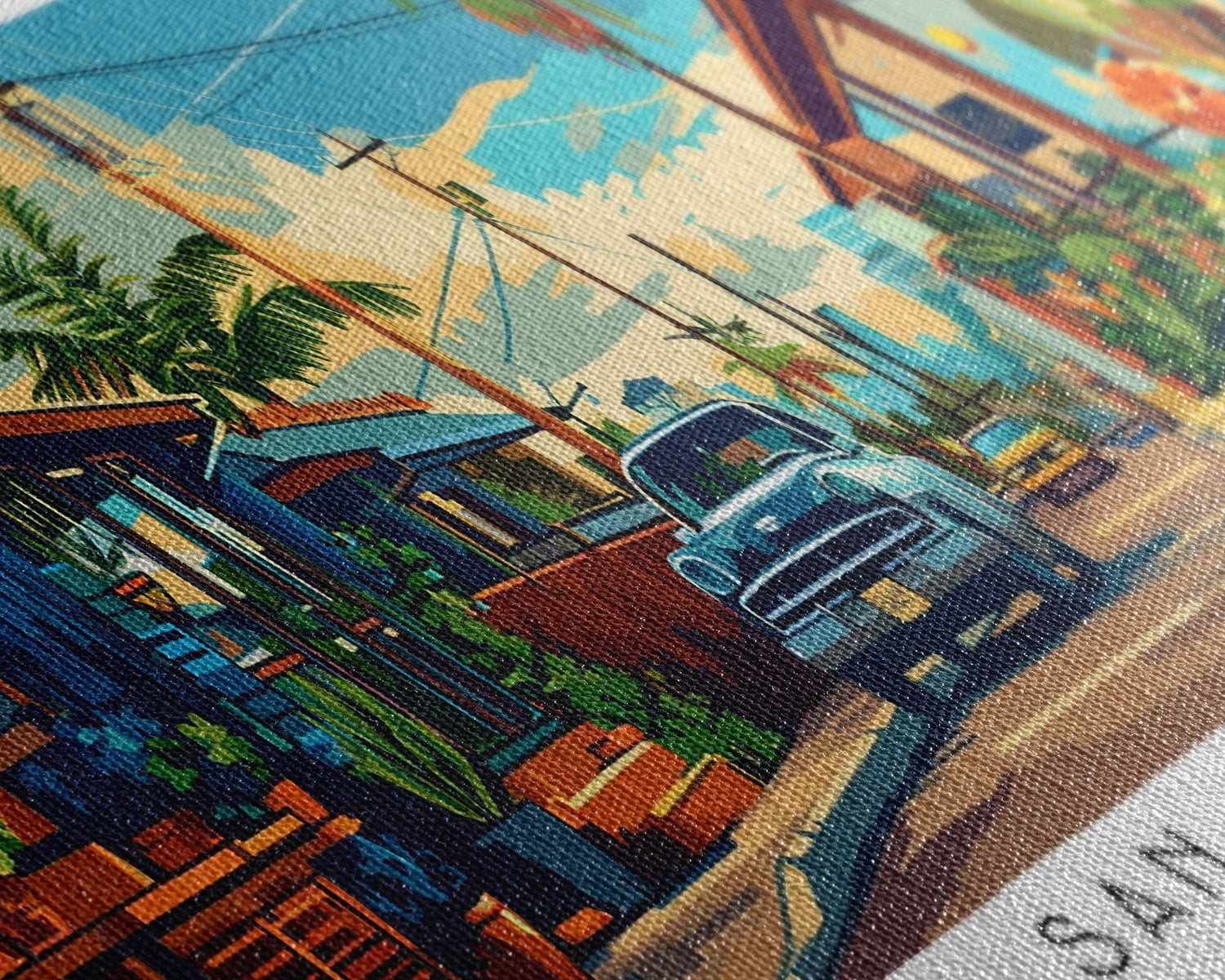 San Antonio Texas Panoramic Wall Art, Mid Century Modern Framed Canvas Print, Retro Pop Art Travel Poster, Home Decor - 10x30 Inches / No Frame - Stretched Canvas Only is backordered and will ship as soon as it is back in stock.