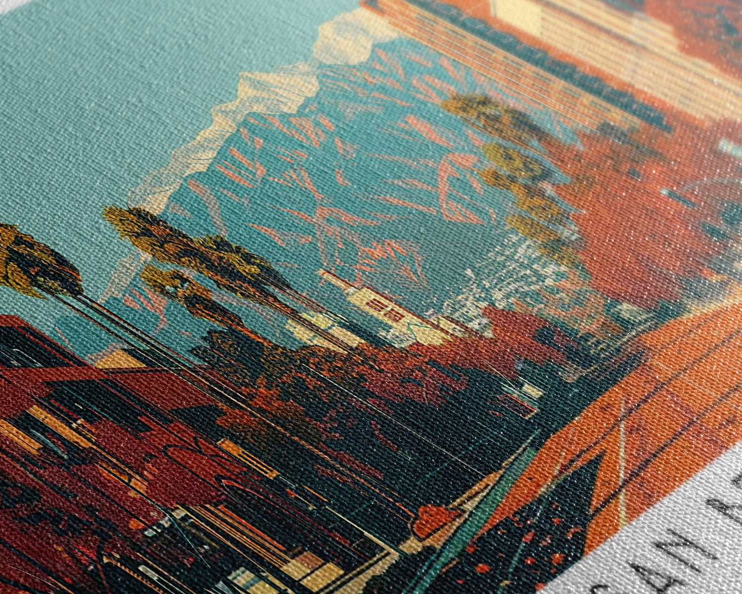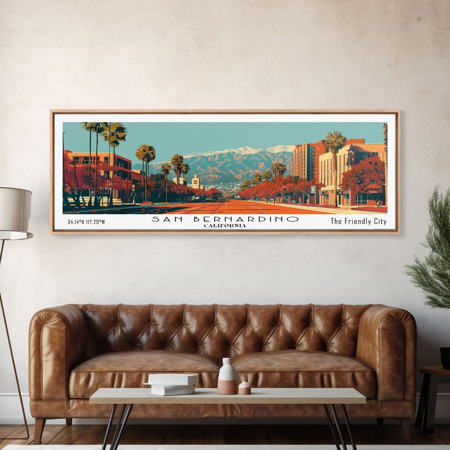 San Bernardino California Panoramic Wall Art, Mid Century Modern Framed Canvas Print, Retro Pop Art Cityscape, Travel Poster, Living Room Decor