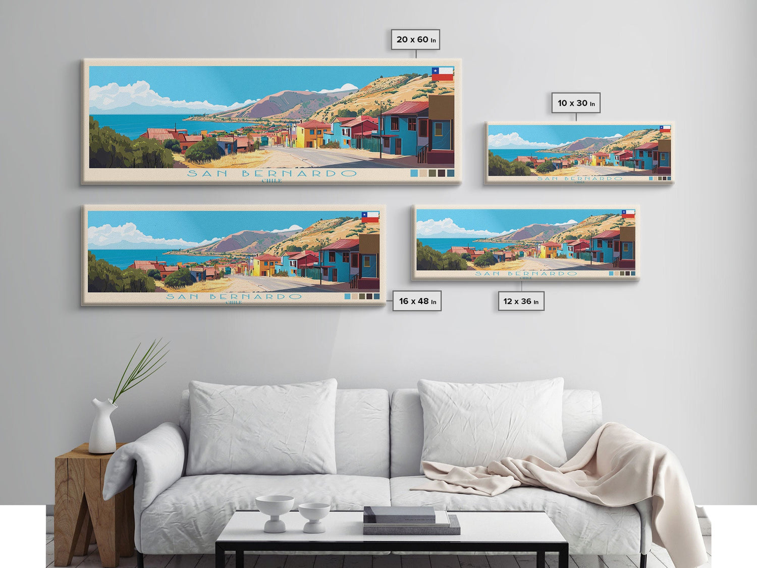 San Bernardo, Chile Panoramic Travel Poster Canvas Print, San Bernardo, Chile Painting, Chile Art, San Bernardo Travel Art, Living Room Painting
