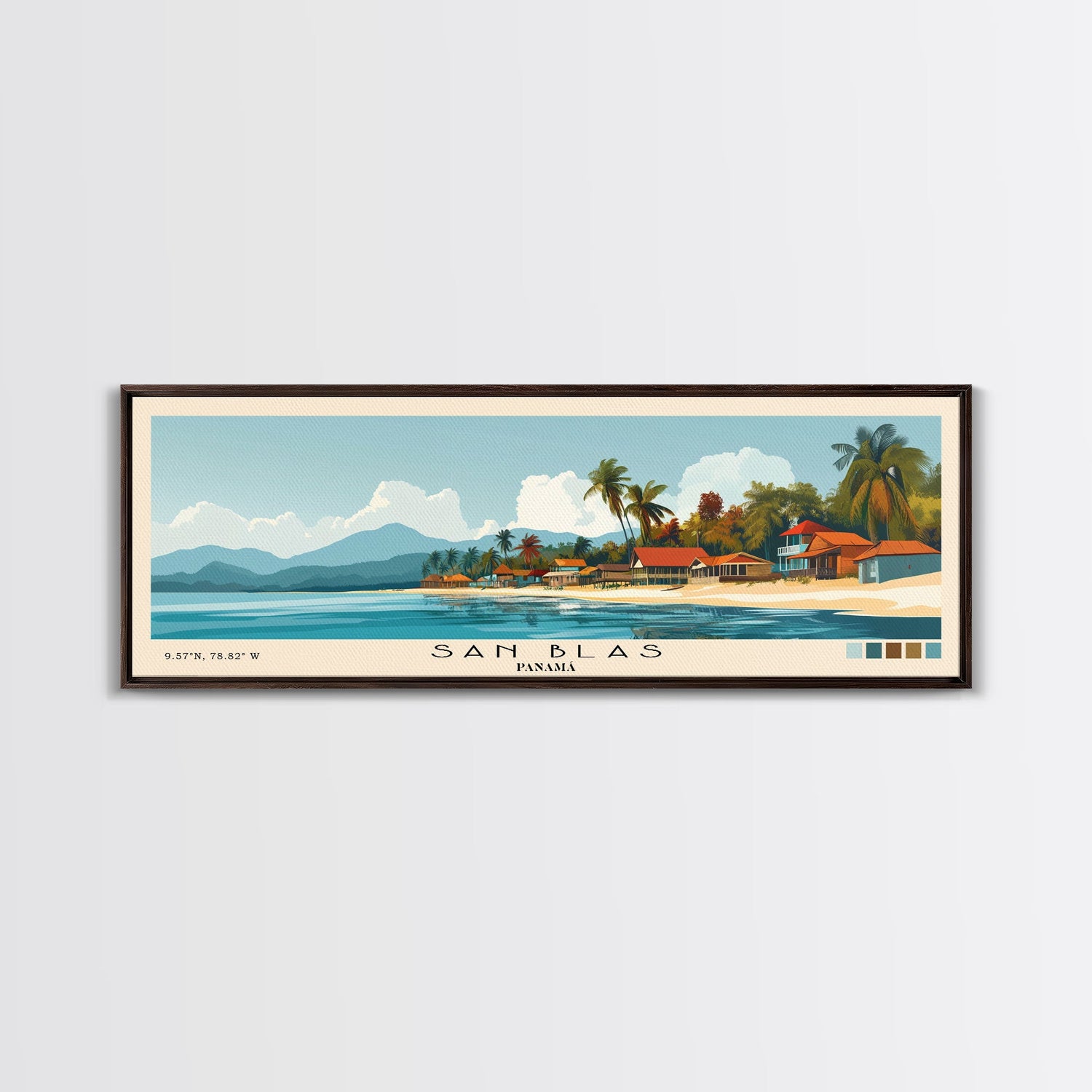 San Blas, Panamá Panoramic Beach Print, Vacation Gift, Panamá Wall Art, Beach Painting, Beach Decor, Beach Painting - 10x30 Inches / No Frame - Stretched Canvas Only is backordered and will ship as soon as it is back in stock.