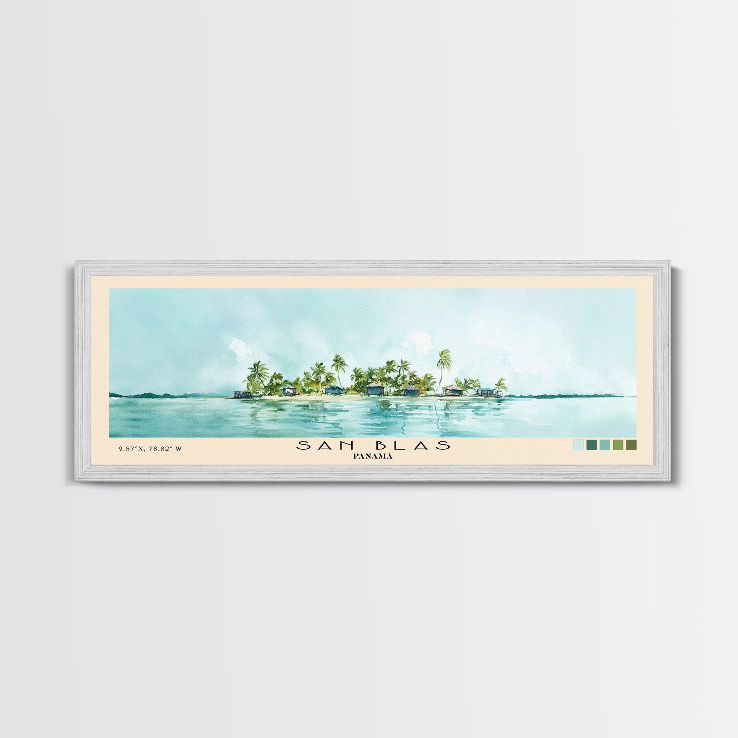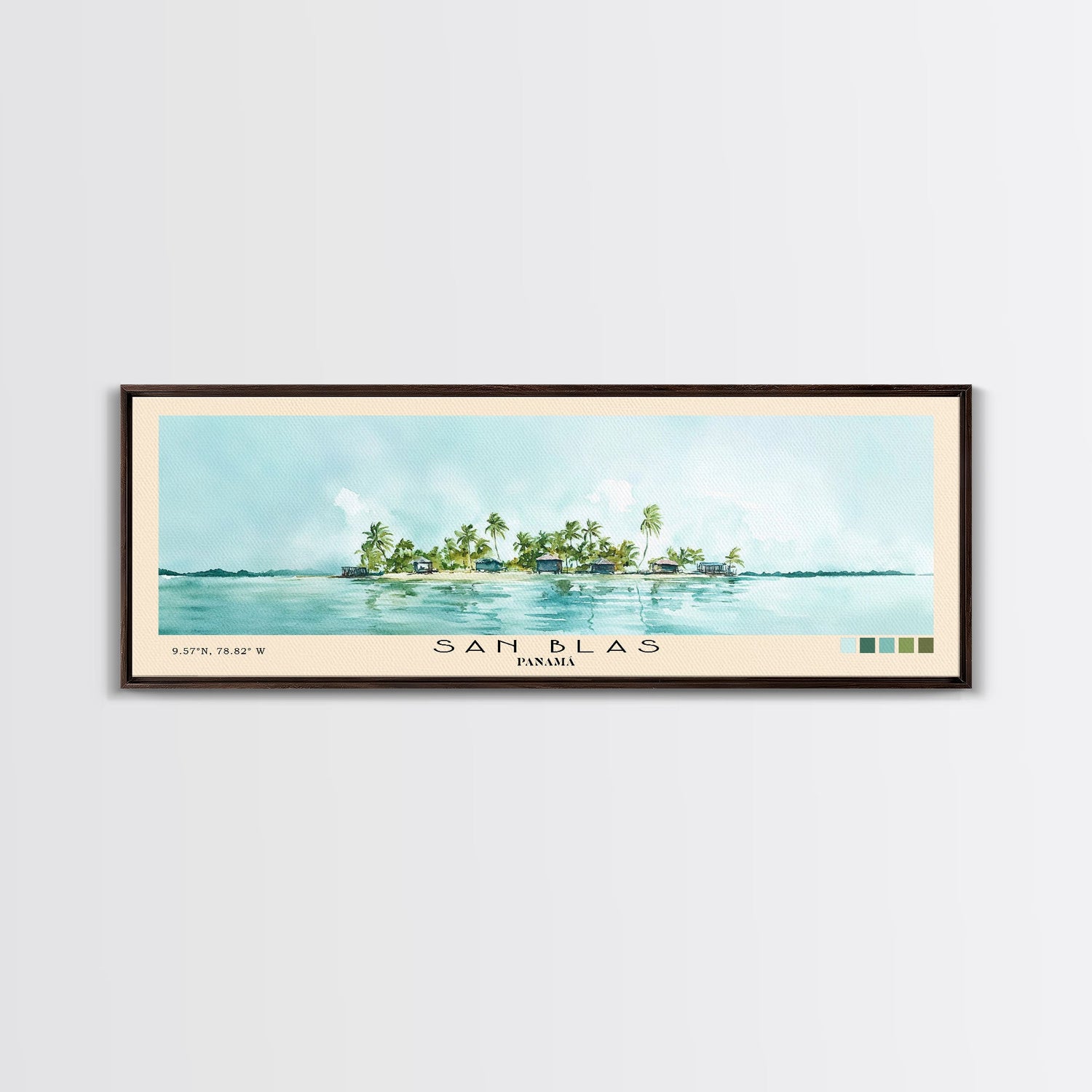 San Blas, Panamá Watercolor Beach Print, Vacation Gift, Panamá Wall Art, Framed Canvas Print, Framed Beach Painting - 10x30 Inches / No Frame - Stretched Canvas Only is backordered and will ship as soon as it is back in stock.