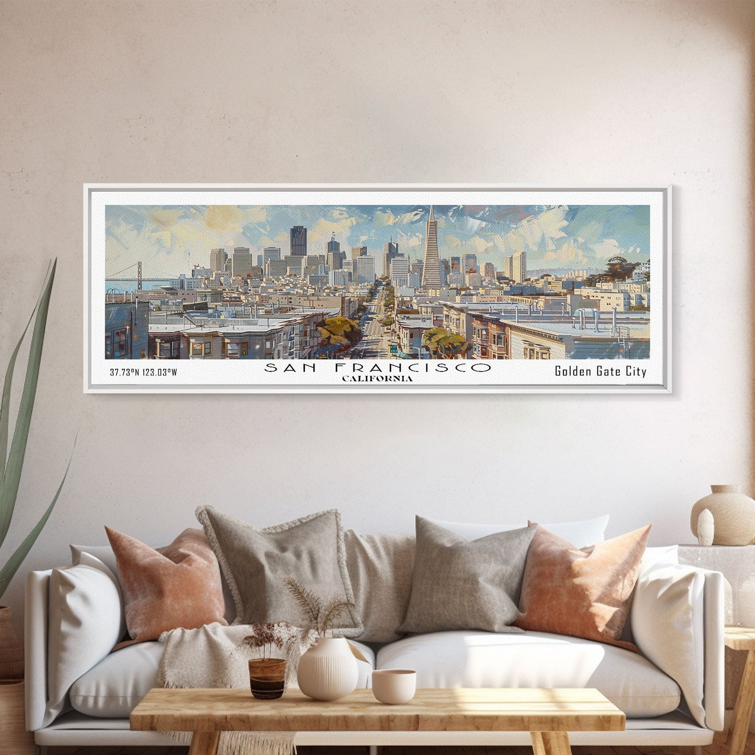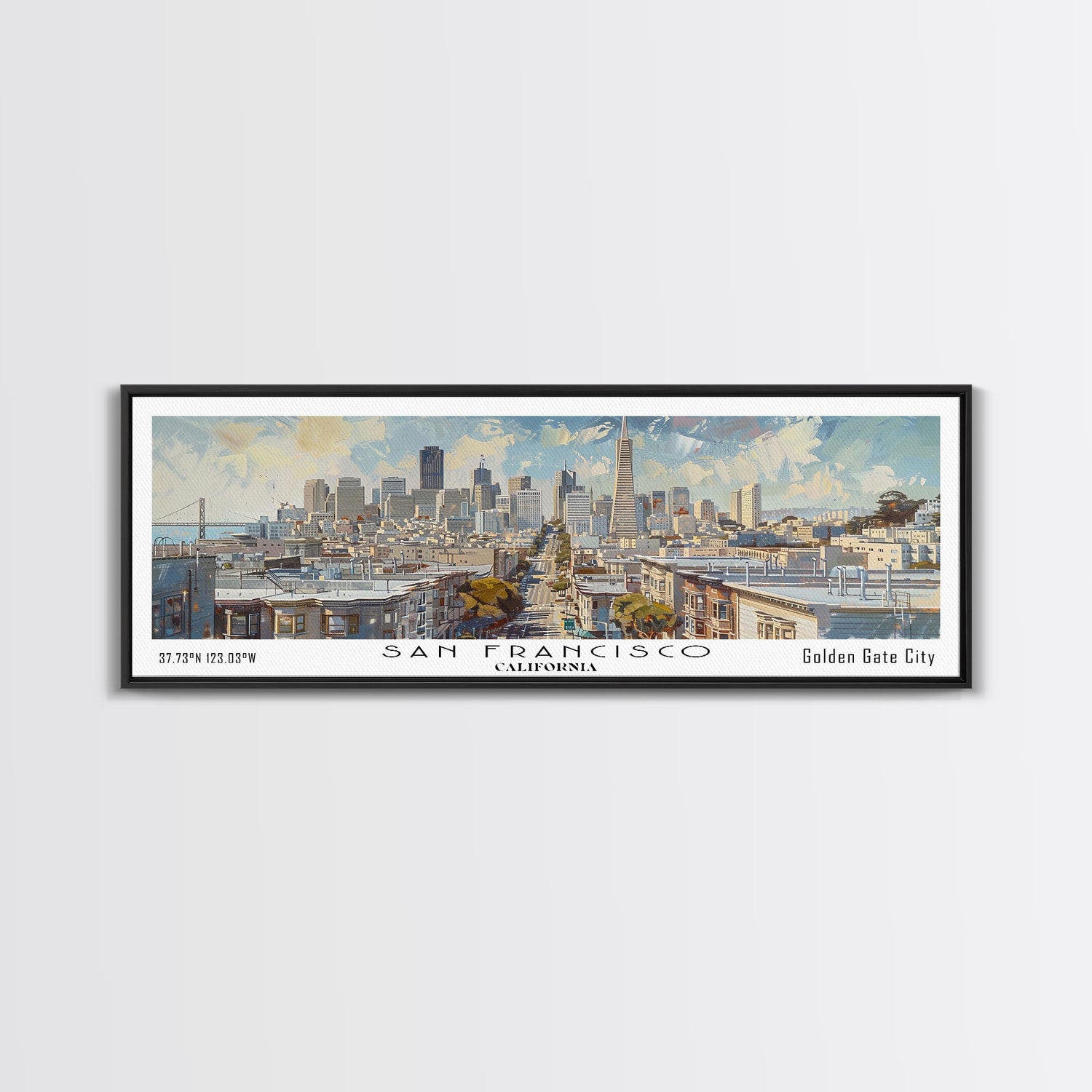 San Francisco California Panoramic Print, Beautiful Framed Canvas Print, Travel Poster Art, Home Decor, Living Room Wall Art