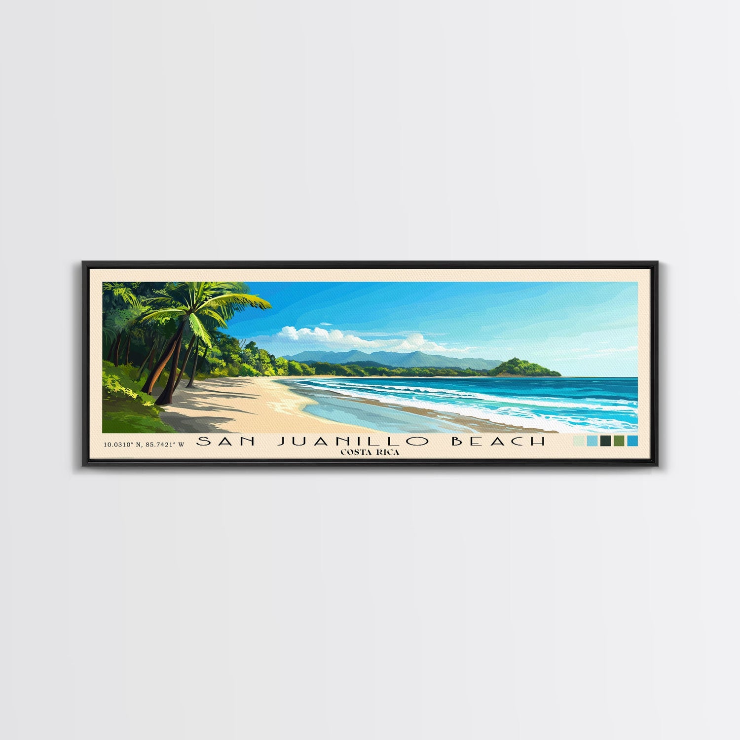 San Juanillo Beach, Costa Rica Panoramic Beach Print, Vacation Gift, Costa Rica Wall Art, Framed Canvas Print, Framed Beach Painting