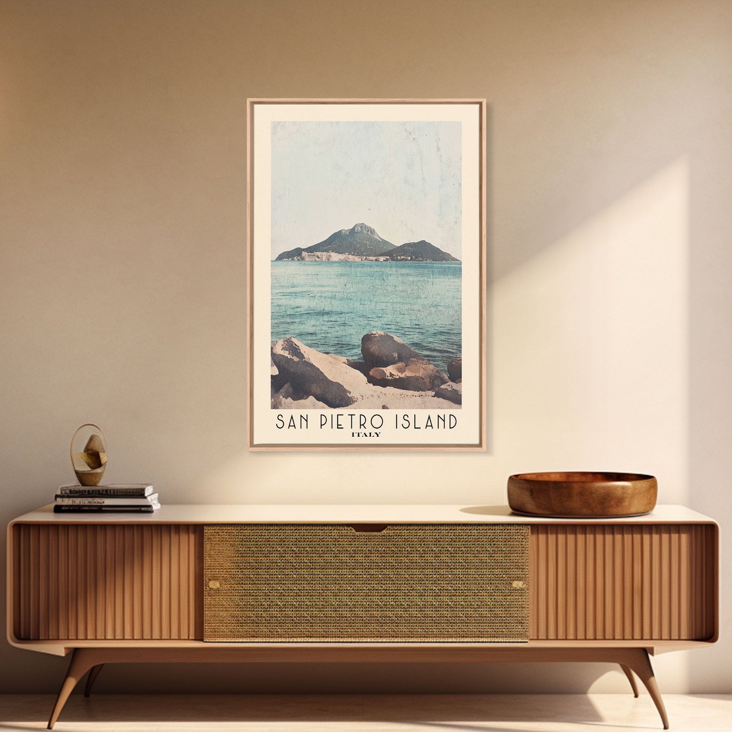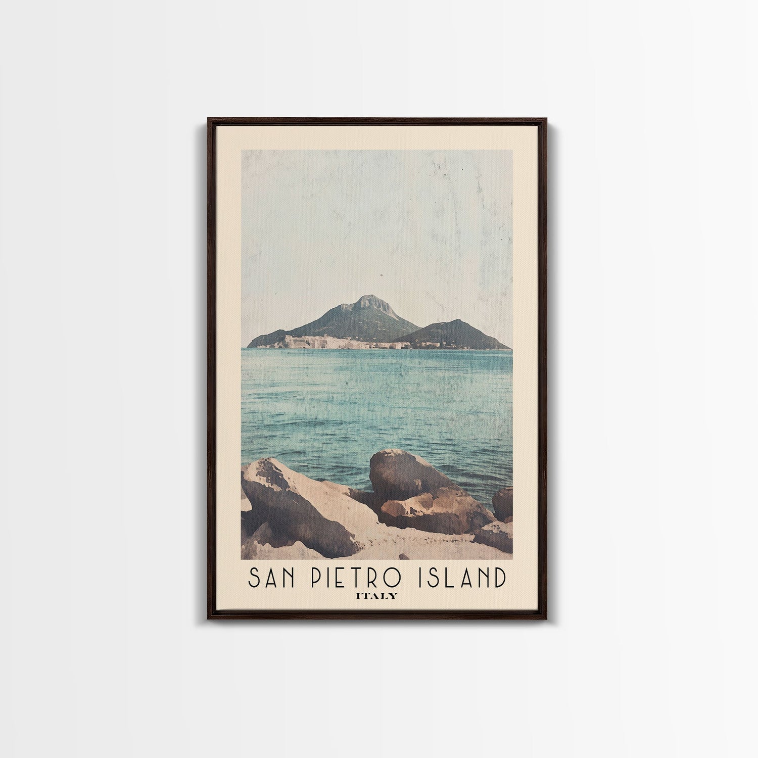 San Pietro Island, Italy Watercolor Print, Vacation Gift, Italy Wall Art, Beach Painting, Beach Decor, Large Wall Art, Wood Frame Art