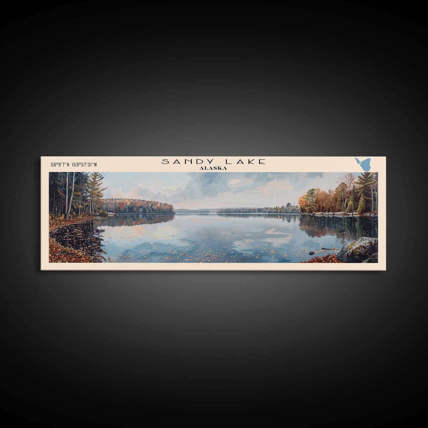 Sandy Lake Framed Canvas Print, Lake House Decor, Panoramic Wall Art, Travel Poster, Serene Landscape Painting, Bedroom Decor