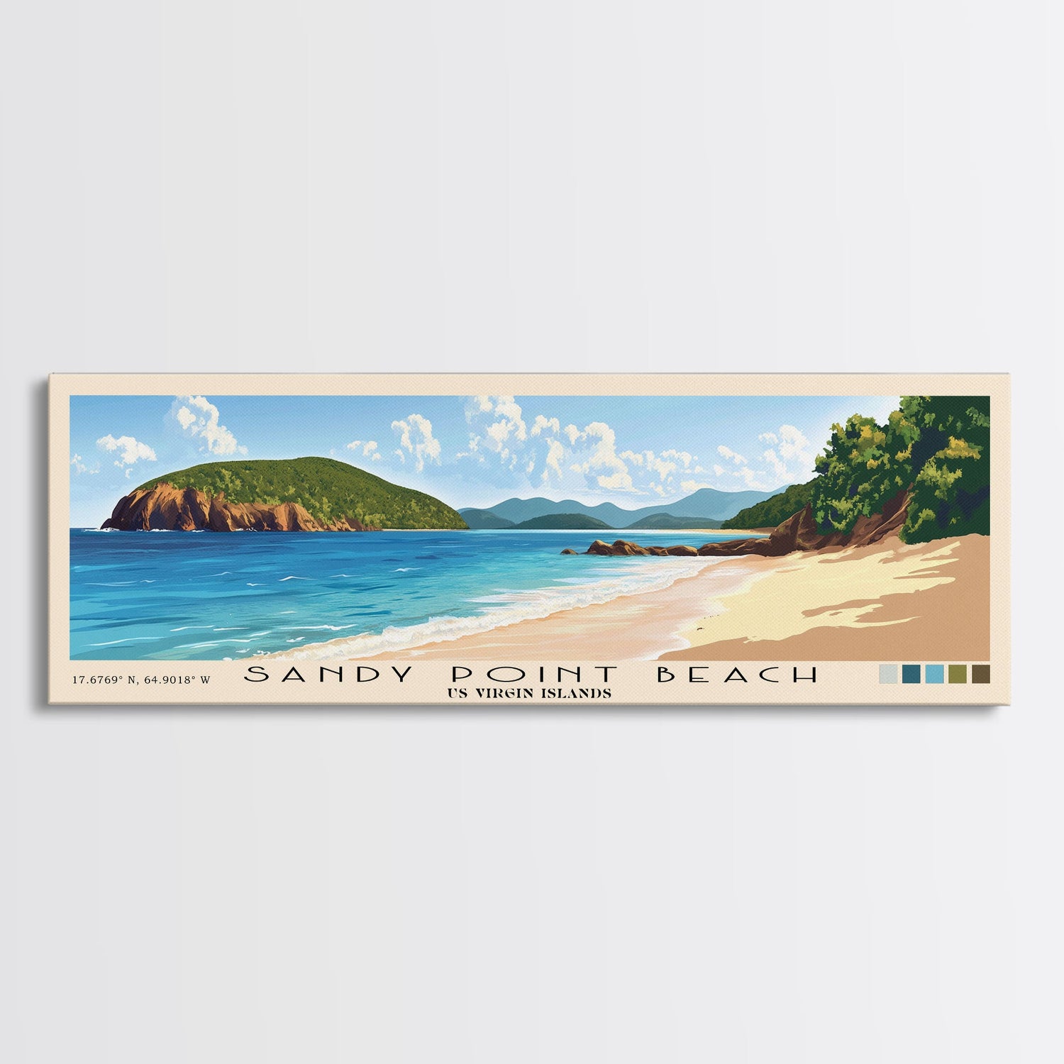 Sandy Point Beach, US Virgin islands Panoramic Beach Print, Vacation Gift, US Virgin islands Wall Art, Framed Canvas Print, Framed Beach Painting
