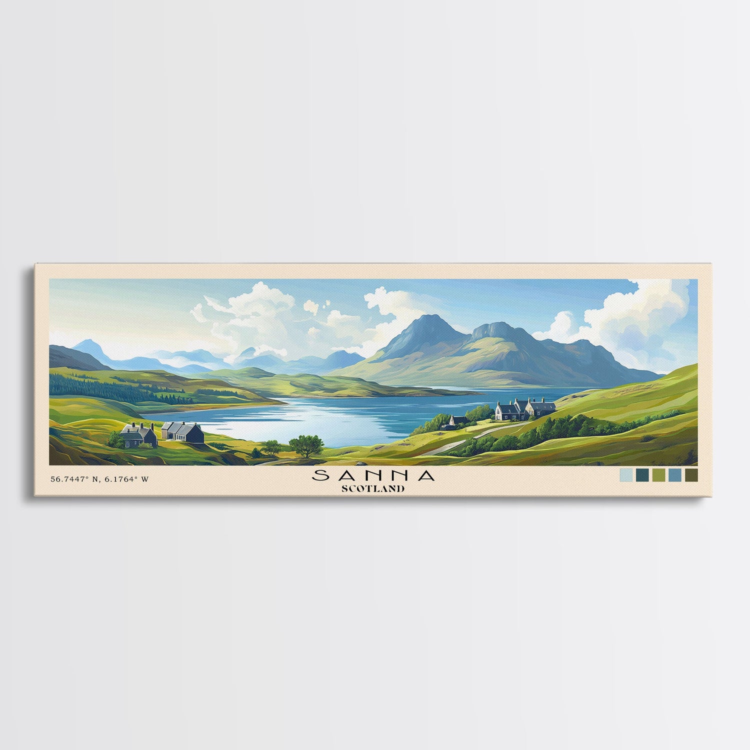 Sanna, Scotland Panoramic Print, Vacation Gift, Scotland Wall Art, Beach Painting, Beach Decor, Beach Or Lakehouse Art - 10x30 Inches / No Frame - Stretched Canvas Only is backordered and will ship as soon as it is back in stock.