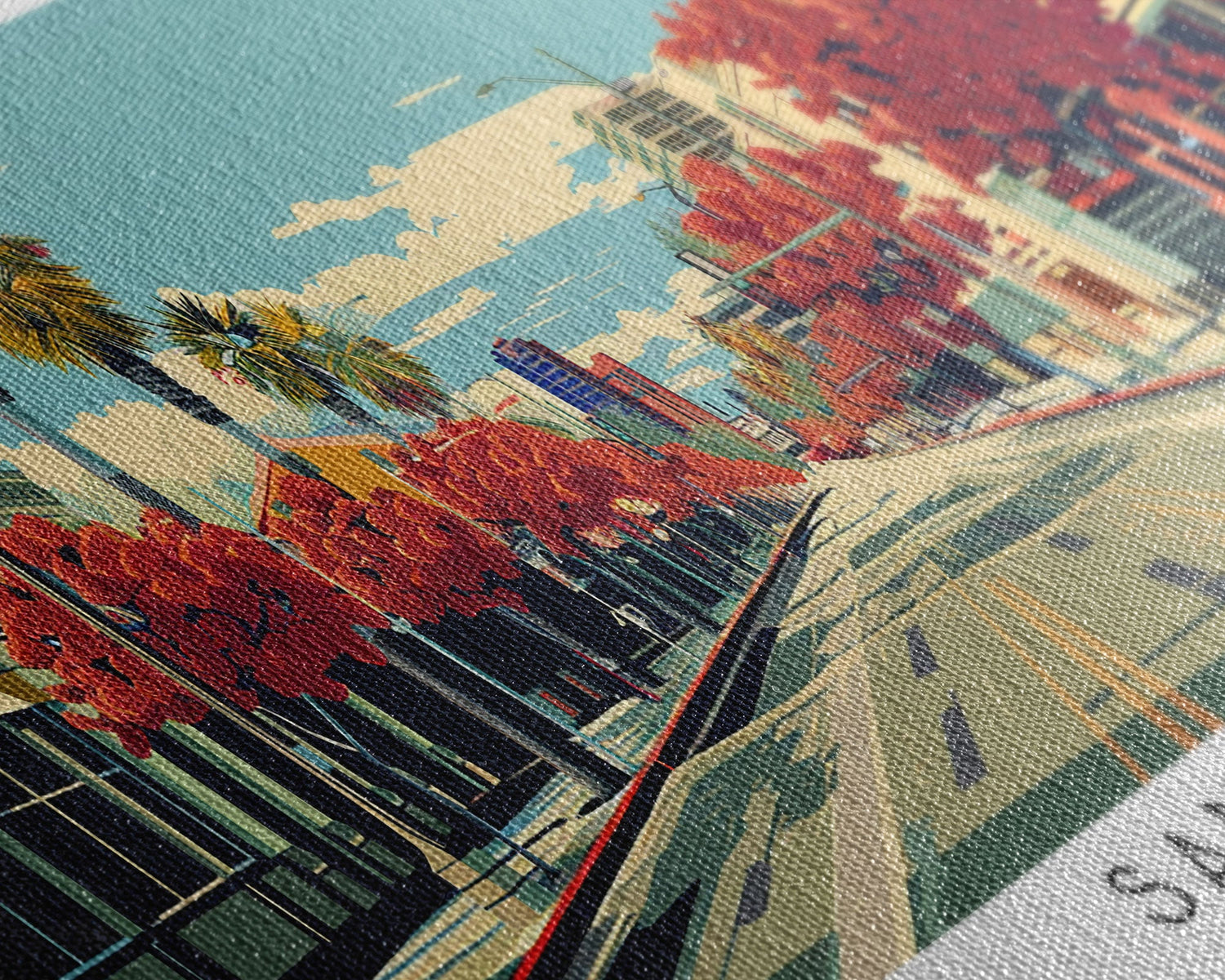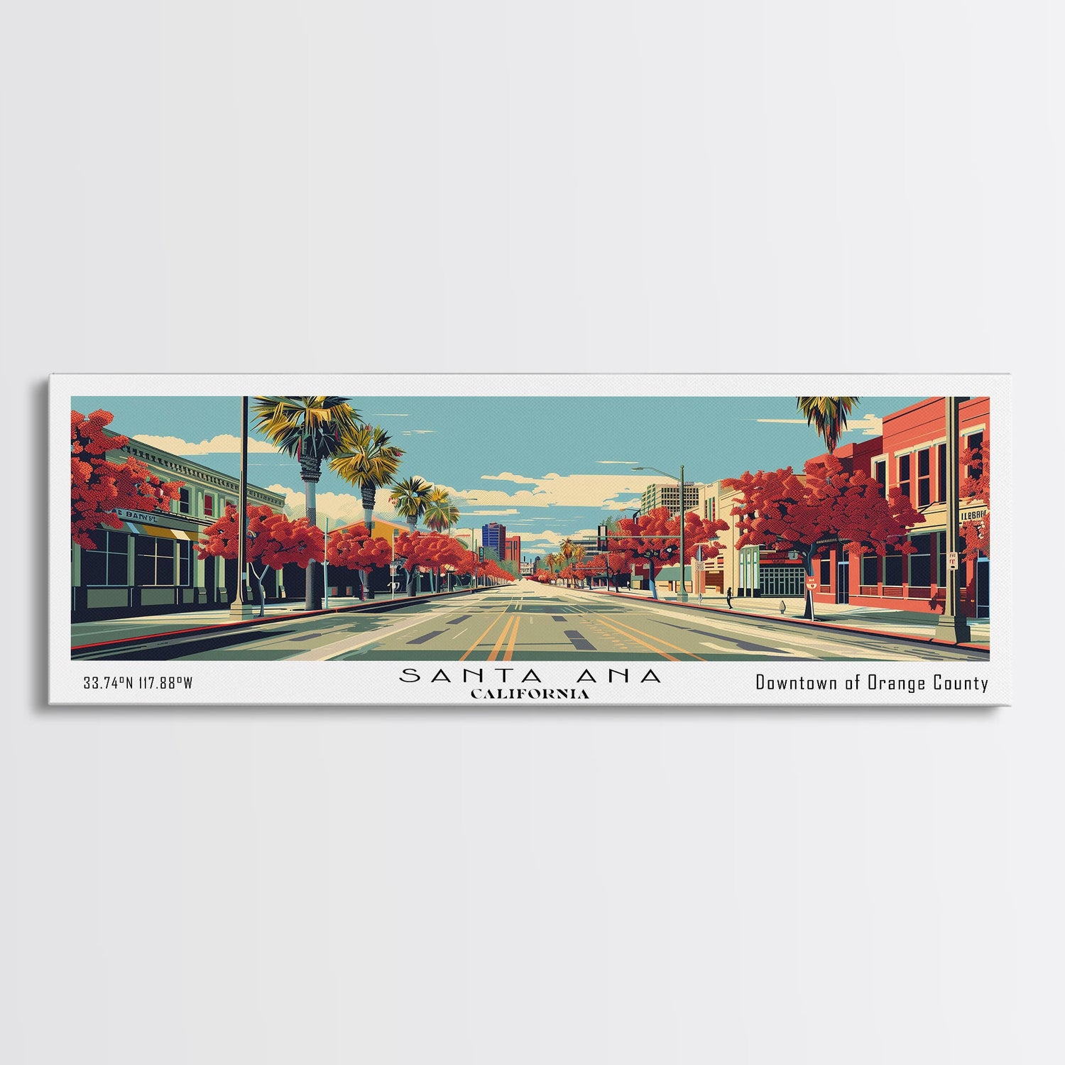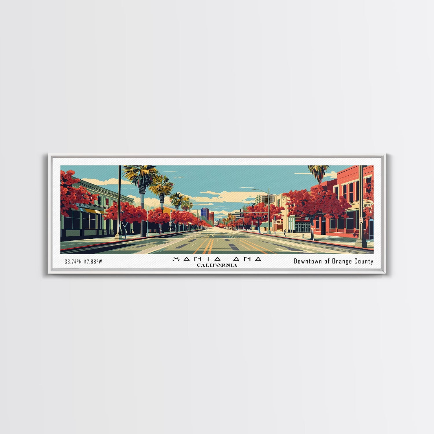 Santa Ana California Panoramic Wall Art, Mid Century Modern Framed Canvas Print, Retro Pop Art Cityscape, Travel Poster, Living Room Decor