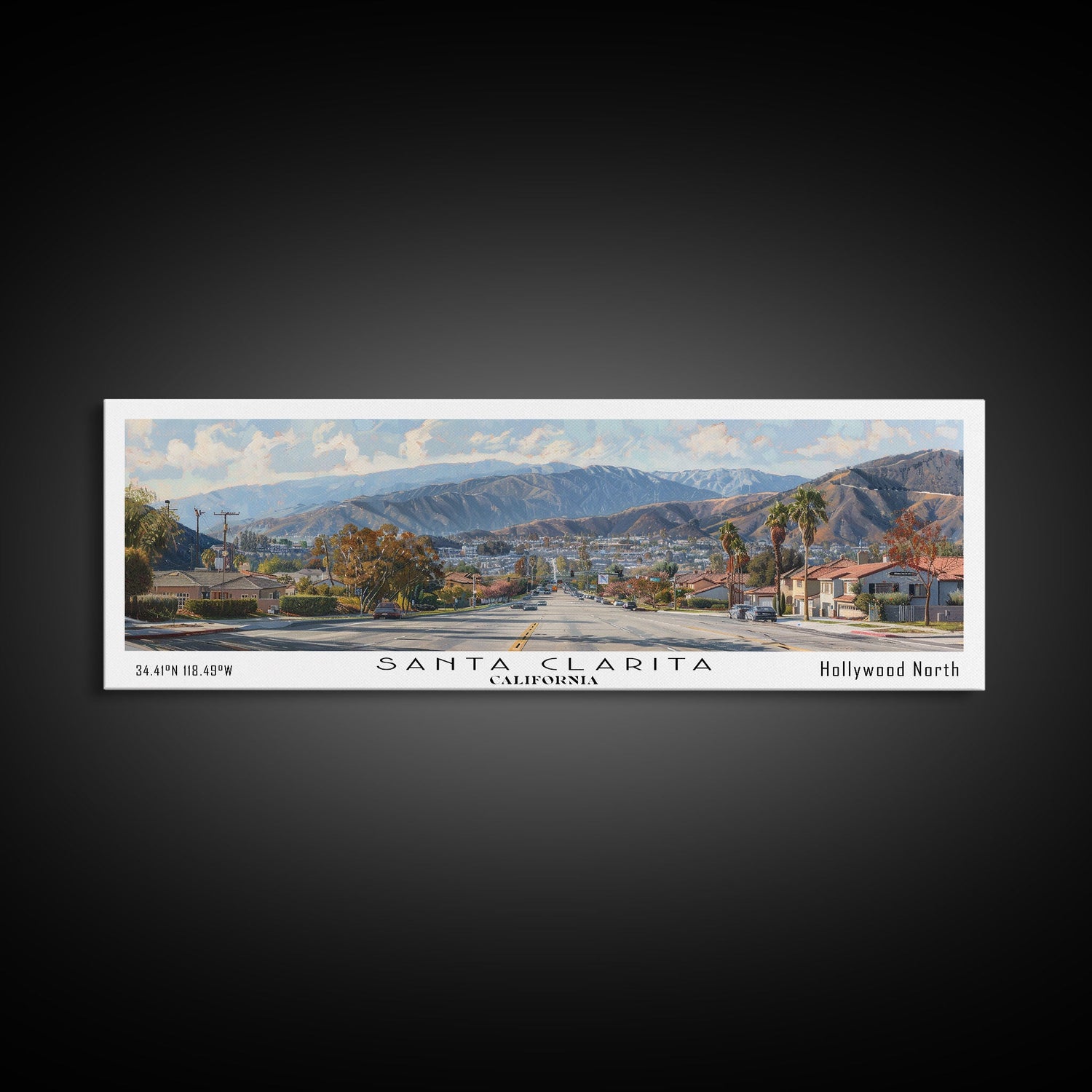 Santa Clarita California Travel Poster, Framed Canvas Print, Wall Art, Home Decor, Travel Print, Living Room Art, Artistic Gift - 10x30 Inches / No Frame - Stretched Canvas Only is backordered and will ship as soon as it is back in stock.