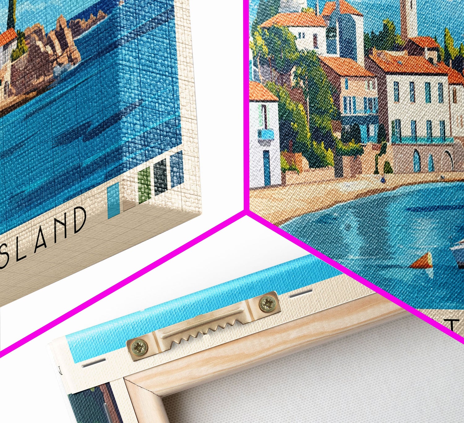 Santa Margarita Island, France Panoramic Print, Vacation Gift, France Wall Art, Beach Painting, Beach Decor, Beach Or Lakehouse Art - 10x30 Inches / No Frame - Stretched Canvas Only is backordered and will ship as soon as it is back in stock.