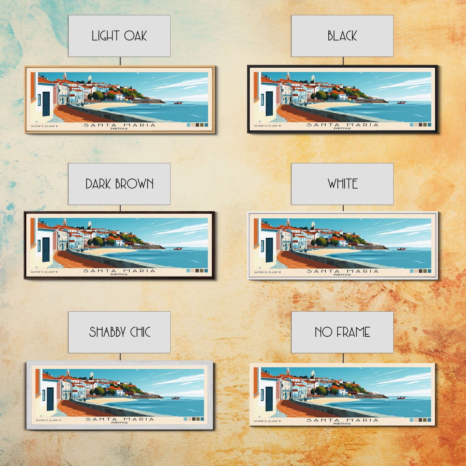 Santa Maria, Portugal Panoramic Beach Print, Vacation Gift, Portugal Wall Art, Beach Painting, Beach Decor, Beach Painting - 10x30 Inches / No Frame - Stretched Canvas Only is backordered and will ship as soon as it is back in stock.