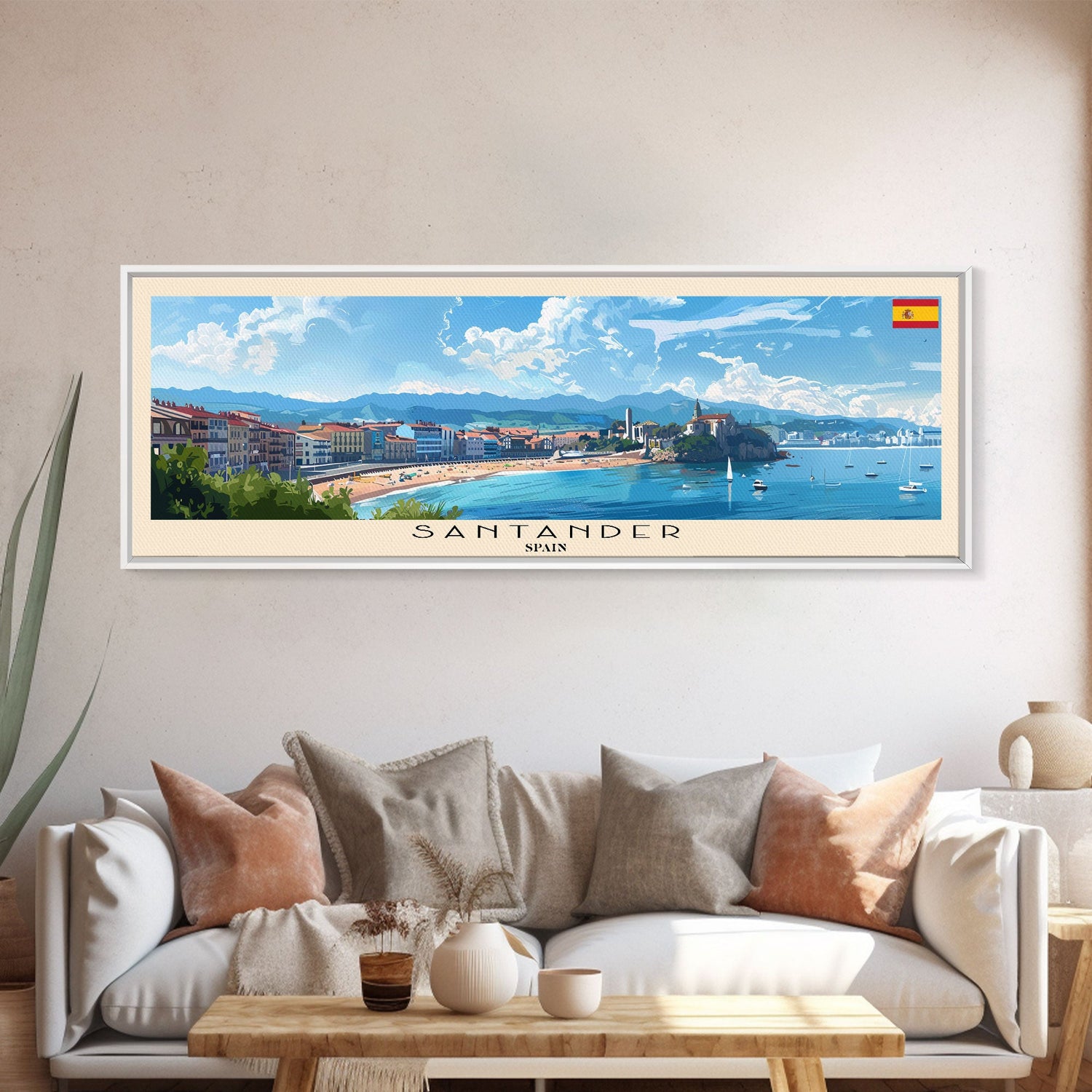 Santander Spain Travel Print Wall Art, Panoramic City Art, Travel Art, Wall Decor, Vacation Gift, Framed Canvas Print Or Metal Art