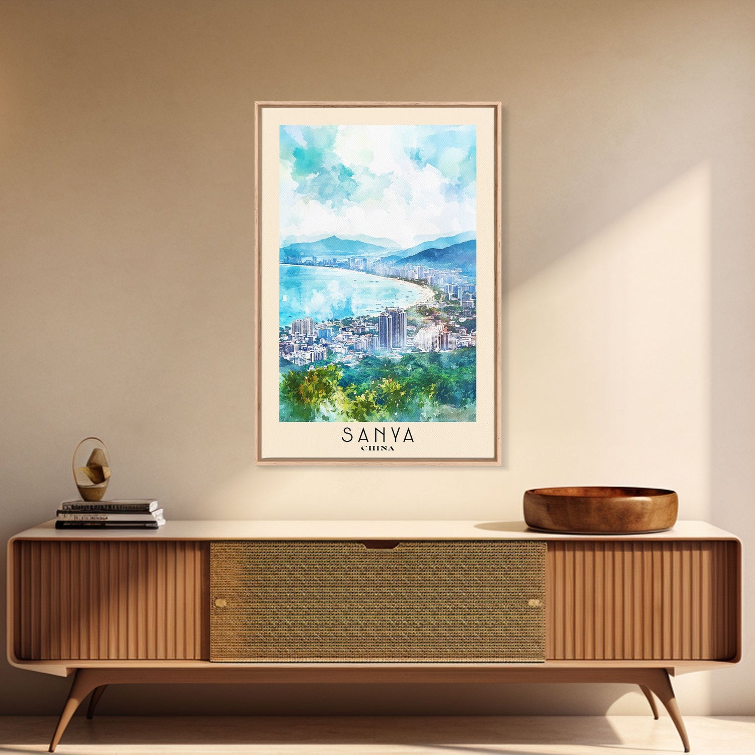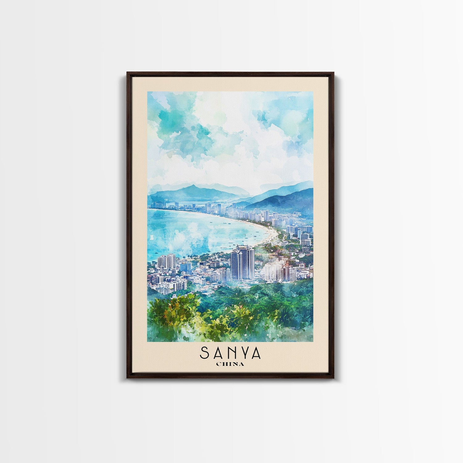 Sanya, China Watercolor Print, Vacation Gift, China Wall Art, Beach Painting, Beach Decor, Large Wall Art, Wood Frame Art