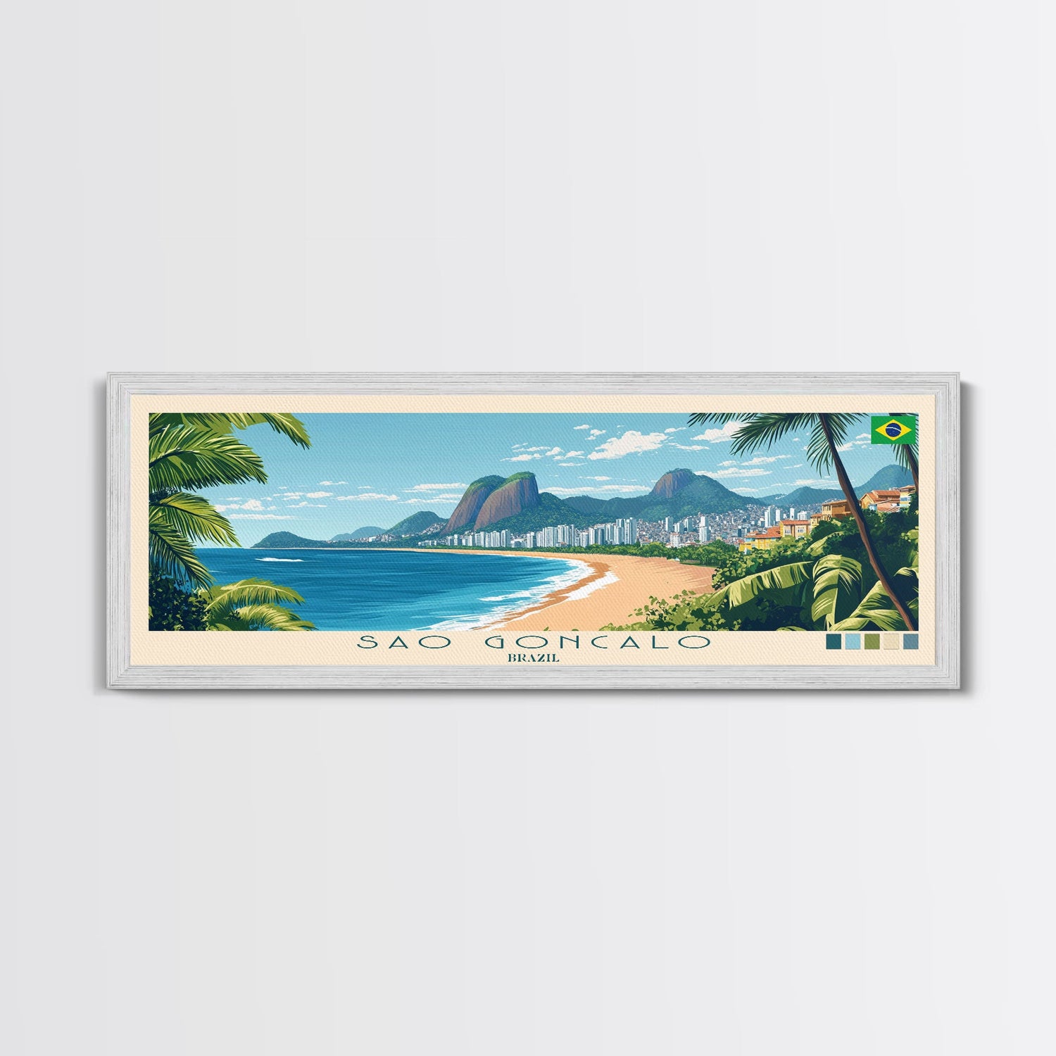 Sao Goncalo, Brazil Panoramic Travel Poster Canvas Print, Sao Goncalo, Brazil Painting, Brazil Art, Sao Goncalo Travel Art, Guest Room Painting