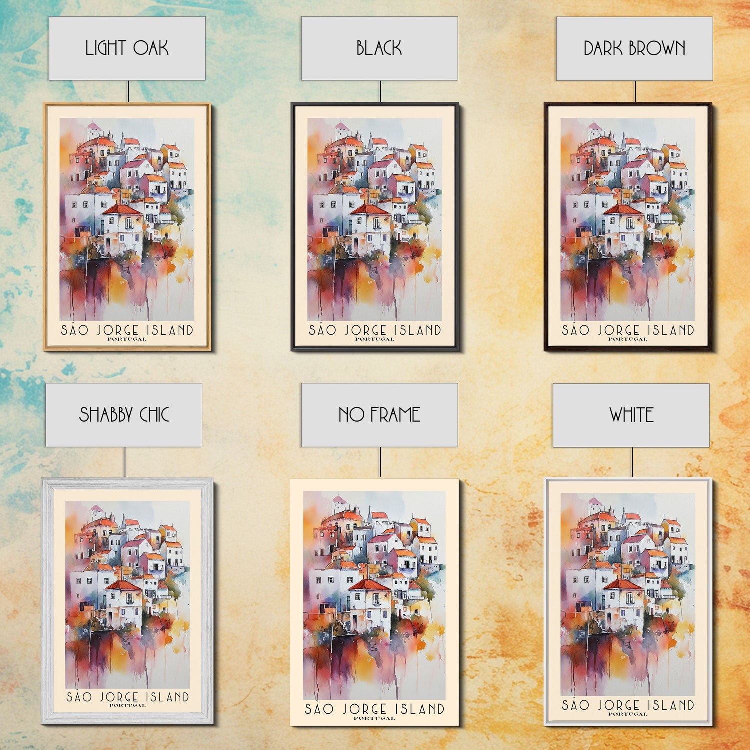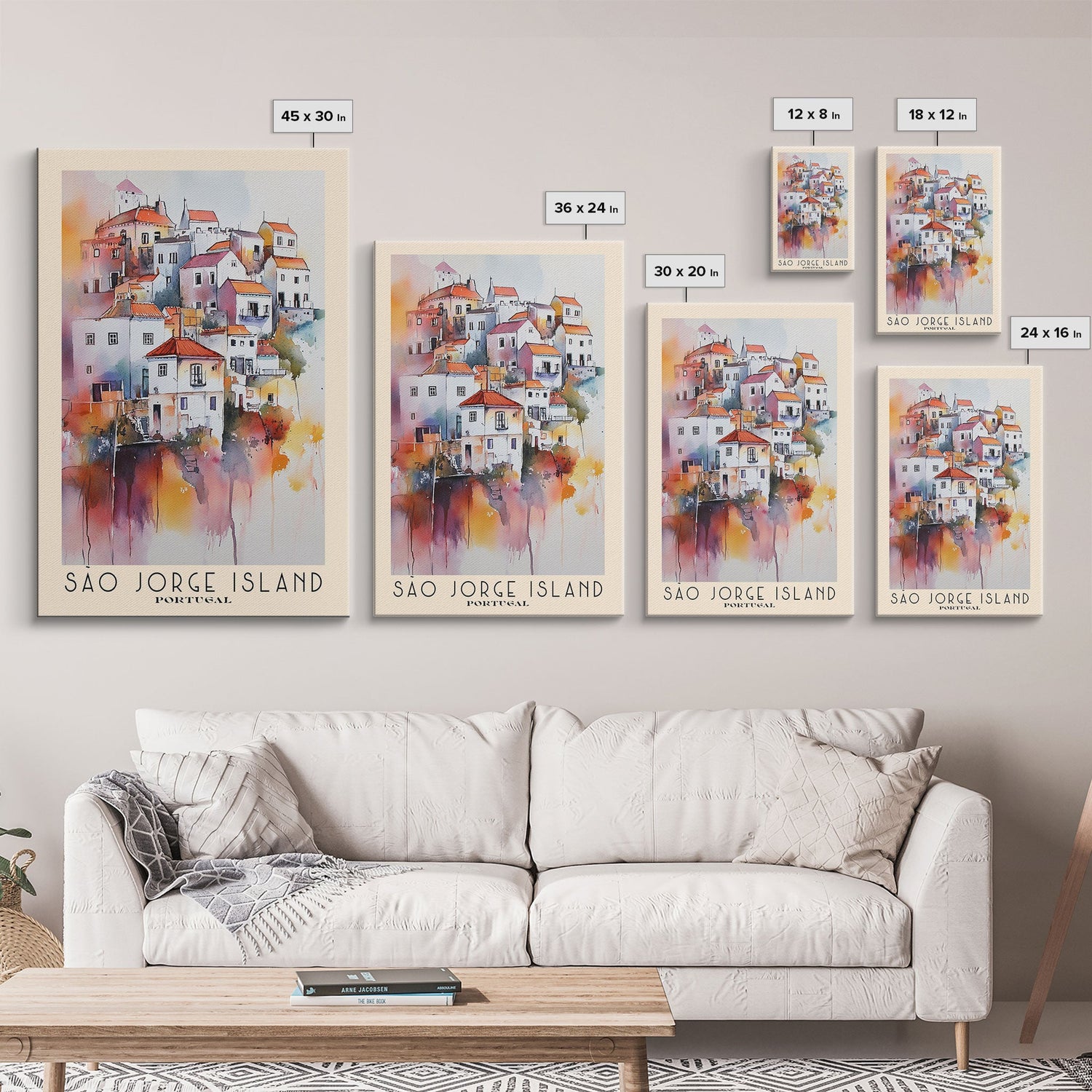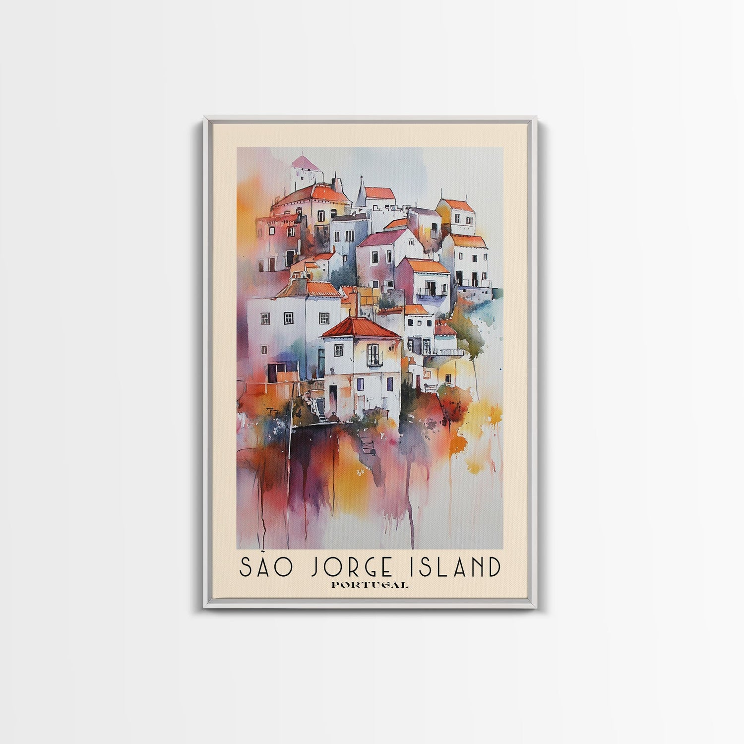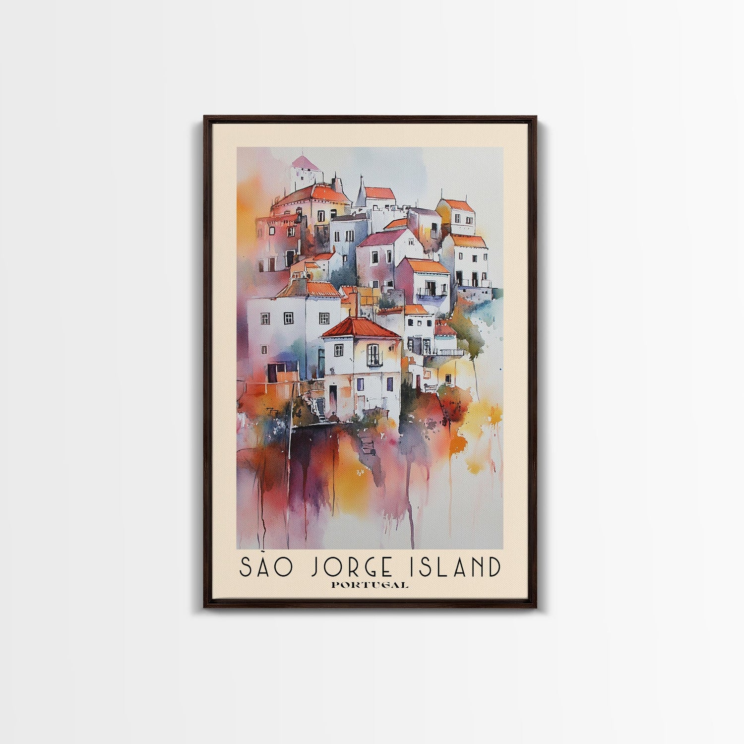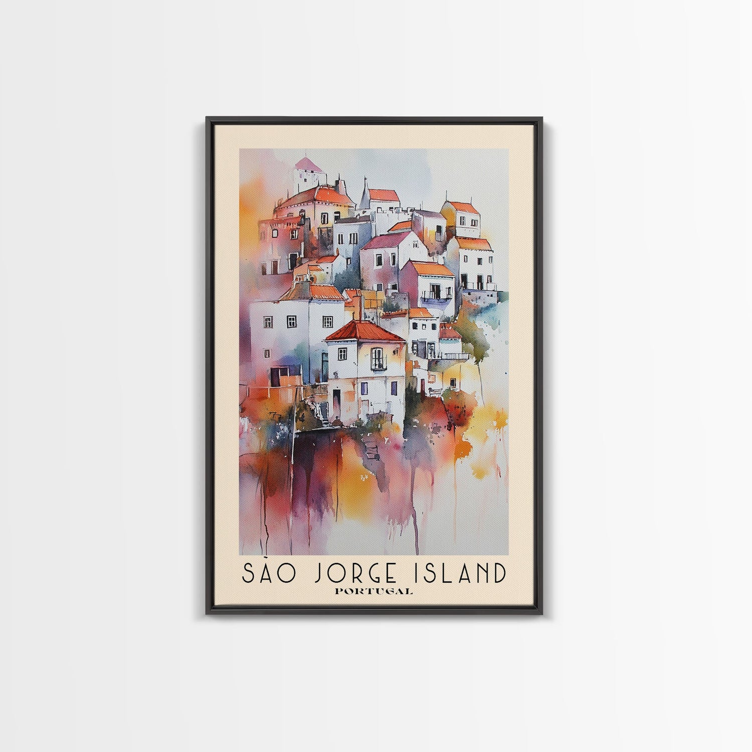 São Jorge Island, Portugal Watercolor Beach Print, Vacation Gift, Portugal Wall Art, Framed Canvas Print, Framed Beach Painting - 8x12 Inches / No Frame - Stretched Canvas Only is backordered and will ship as soon as it is back in stock.