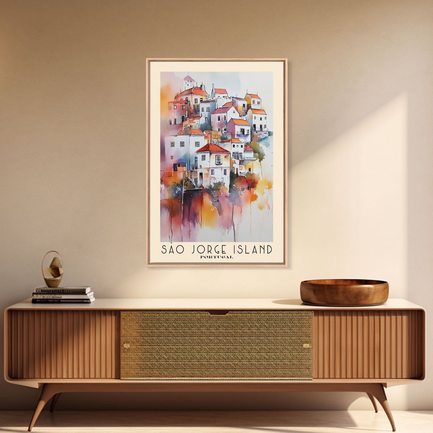 São Jorge Island, Portugal Watercolor Beach Print, Vacation Gift, Portugal Wall Art, Framed Canvas Print, Framed Beach Painting