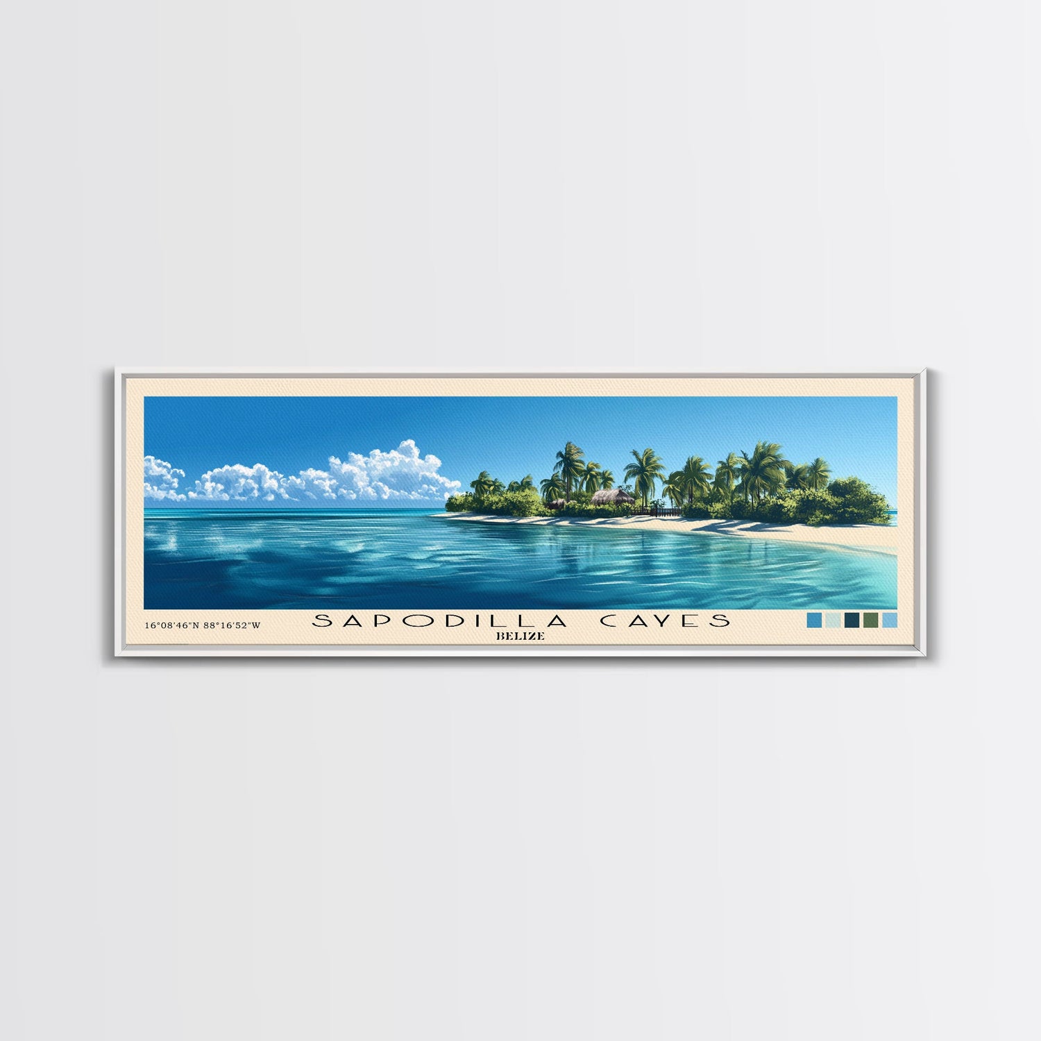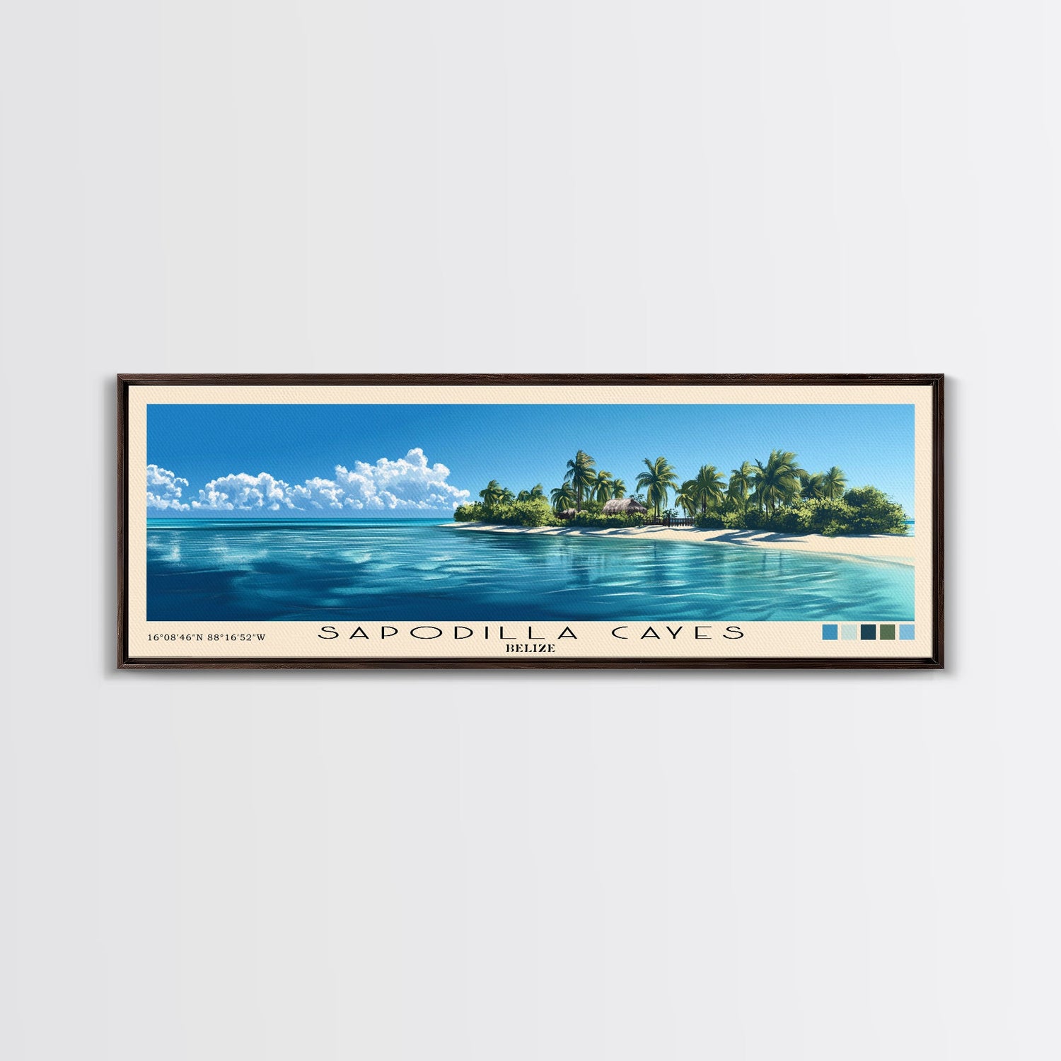 Sapodilla Cayes, Belize Panoramic Beach Print, Vacation Gift, Belize Wall Art, Framed Canvas Print, Framed Beach Painting