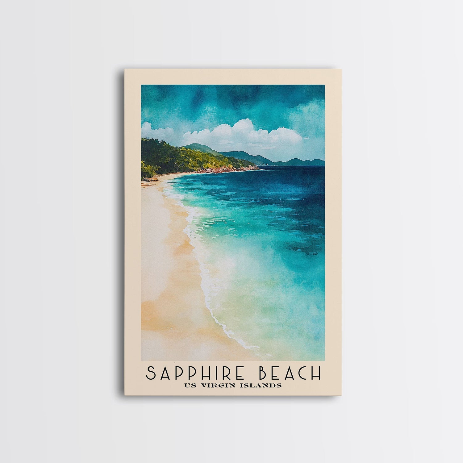 Sapphire Beach, US Virgin islands Watercolor Beach Print, Vacation Gift, US Virgin islands Wall Art, Beach Painting, Beach Decor, Beach Painting - 8x12 Inches / No Frame - Stretched Canvas Only is backordered and will ship as soon as it is back in stock.