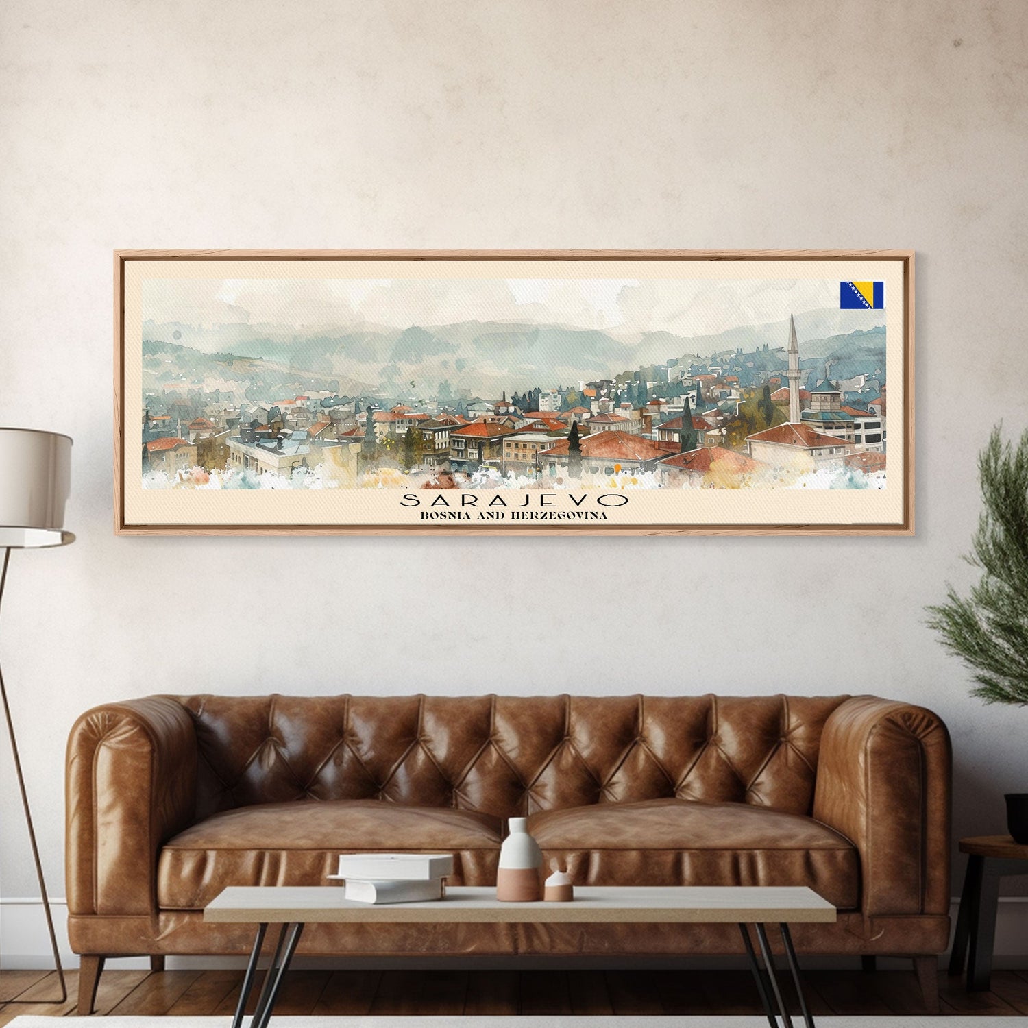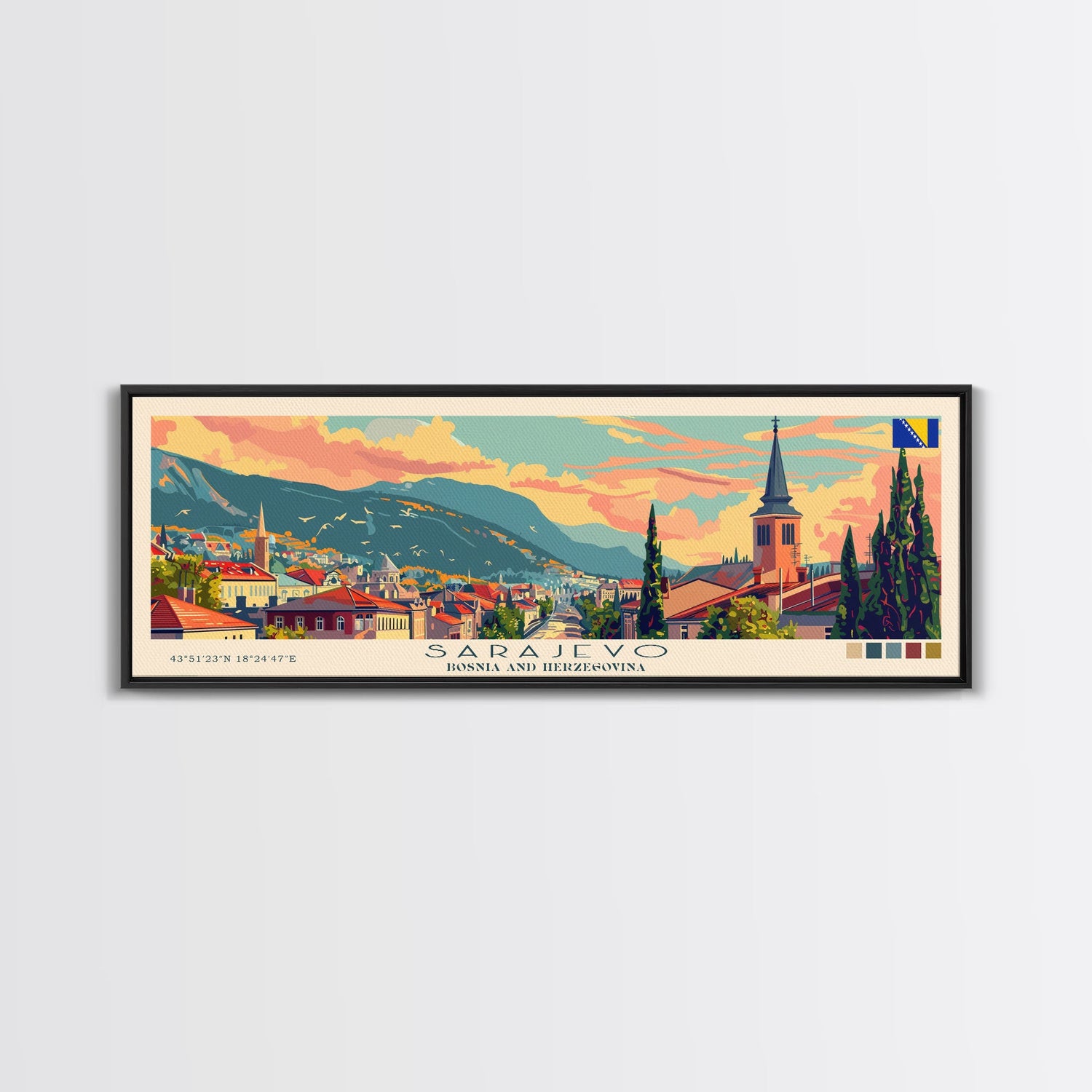 Sarajevo Bosnia Travel Art, City Art, Framed Canvas Print or Metal Wall Art, Europe Travel Poster, Panoramic Wall Art, Extra Wide Wall Art