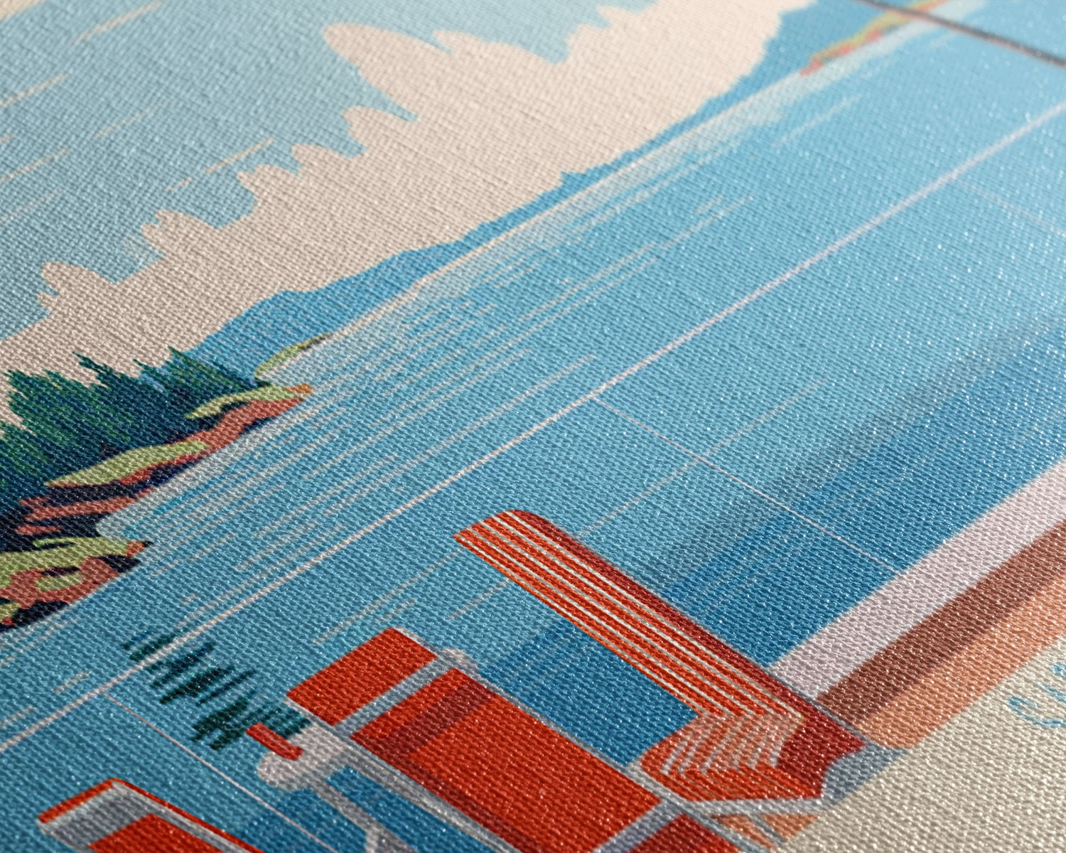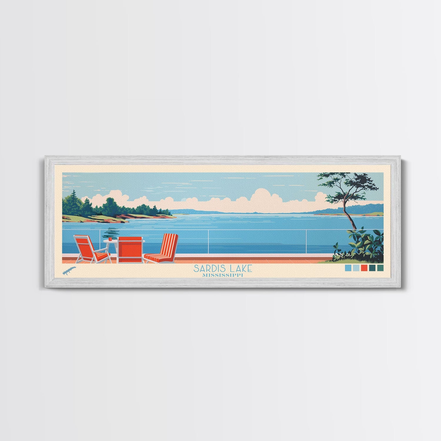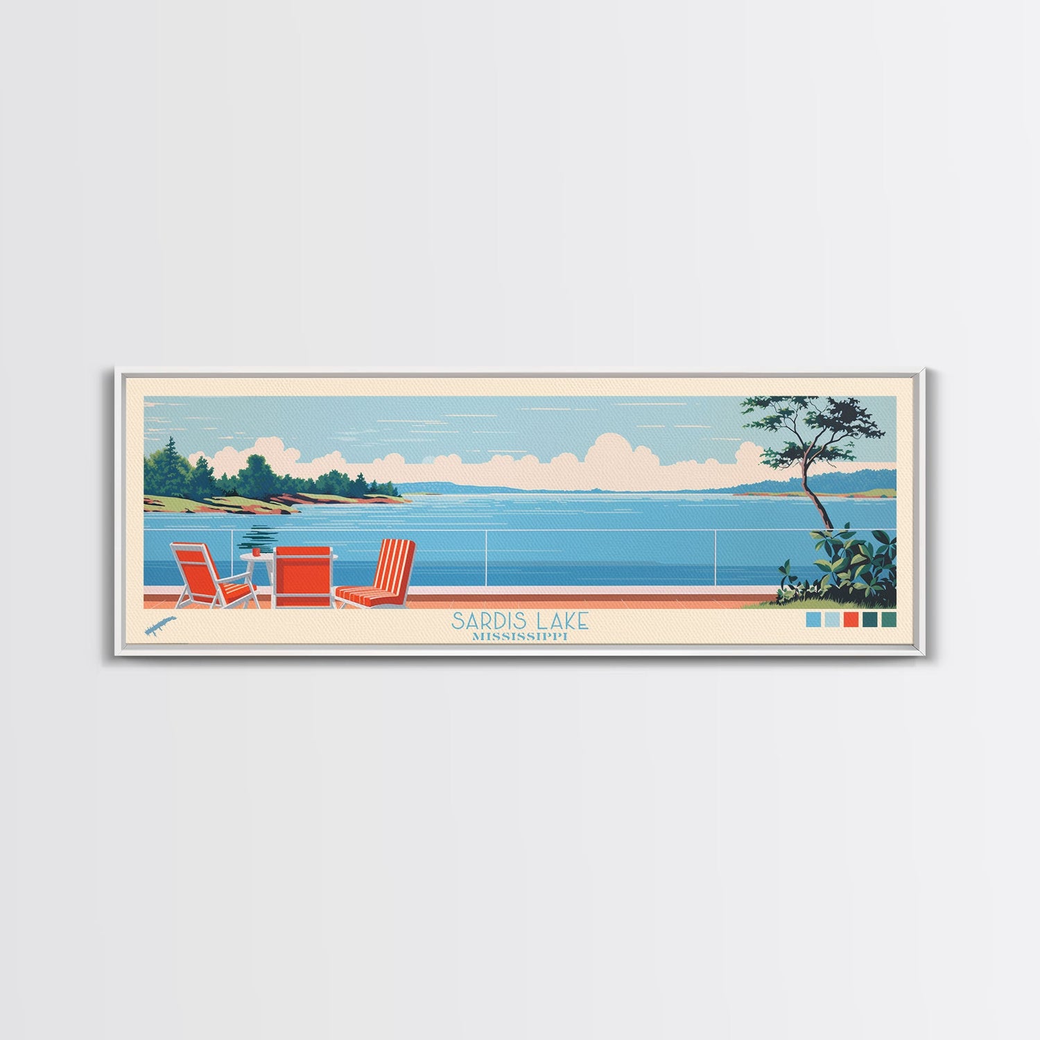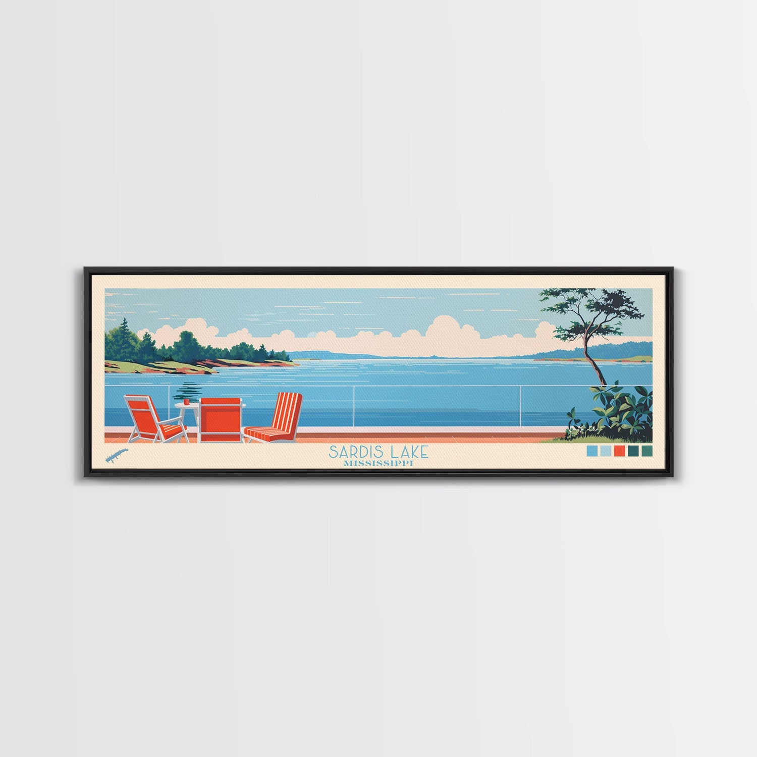 Sardis Lake, Mississippi Framed Canvas Print, Panoramic Wall Art, Midcentury Modern Decor, Bedroom Art, Pop Art, Travel Poster