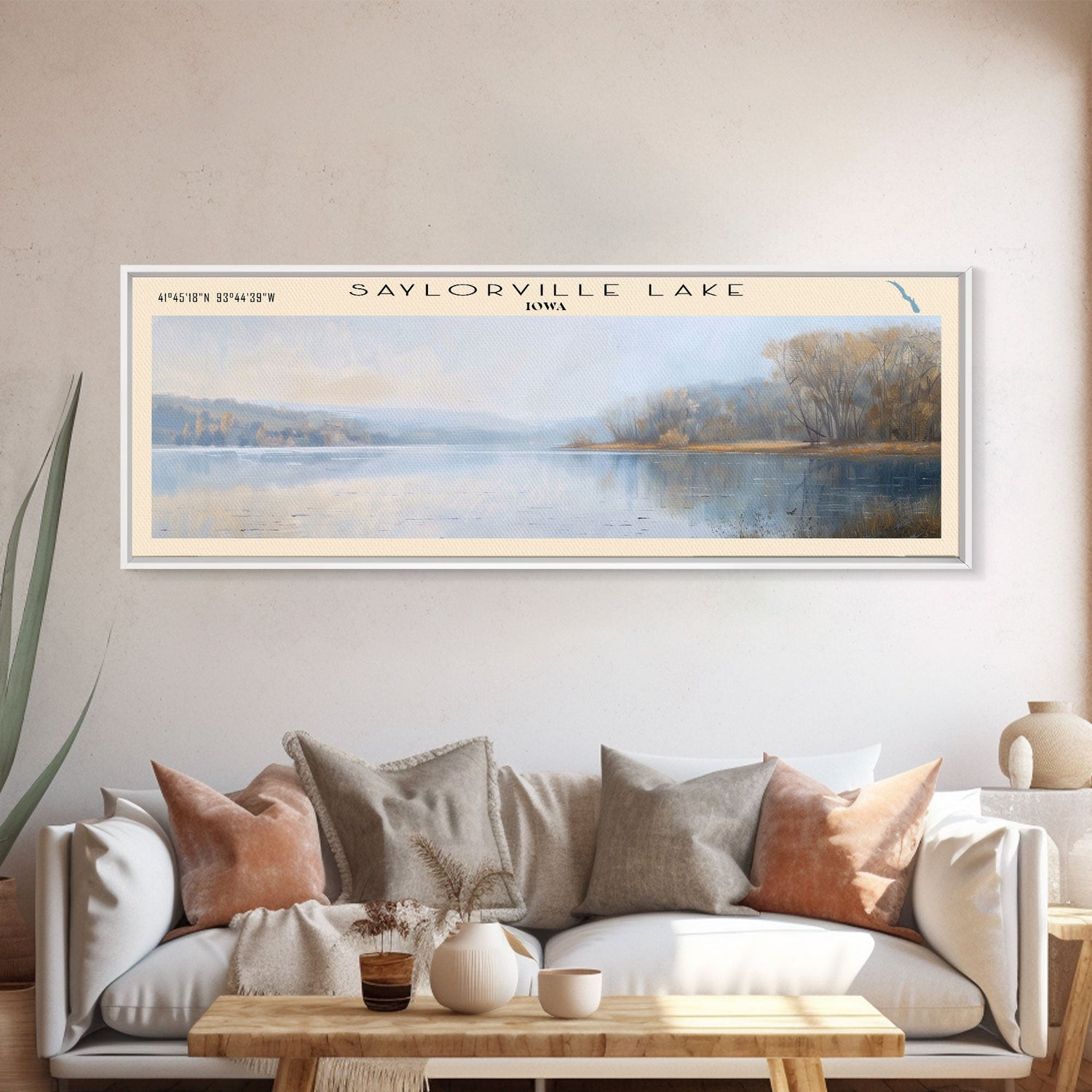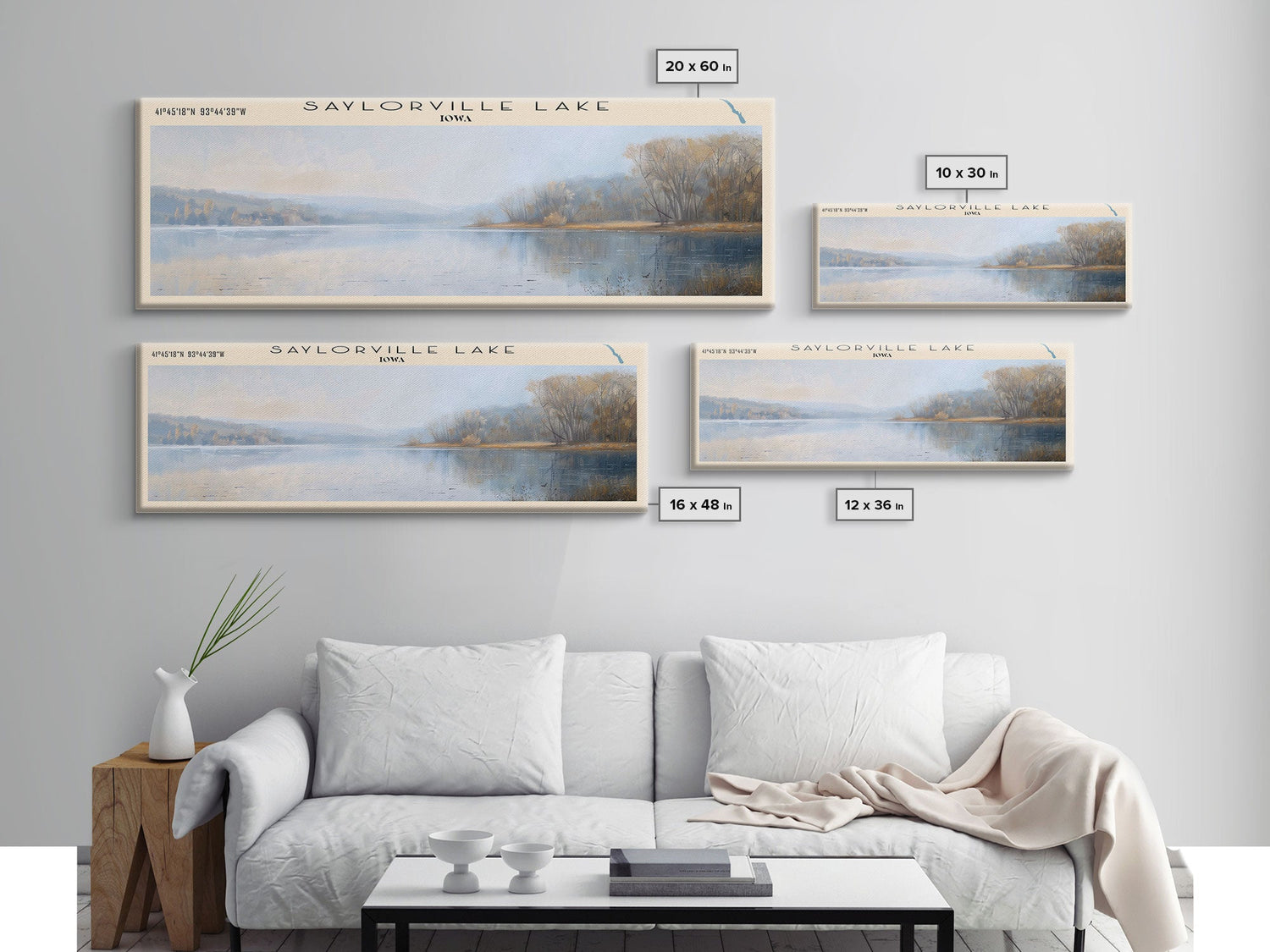 Saylorville Lake Iowa Framed Canvas Print, Lake House Decor, Panoramic Wall Art, Travel Poster, Beautiful Lake Scene, Home Decor